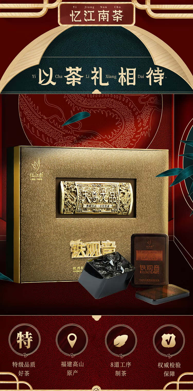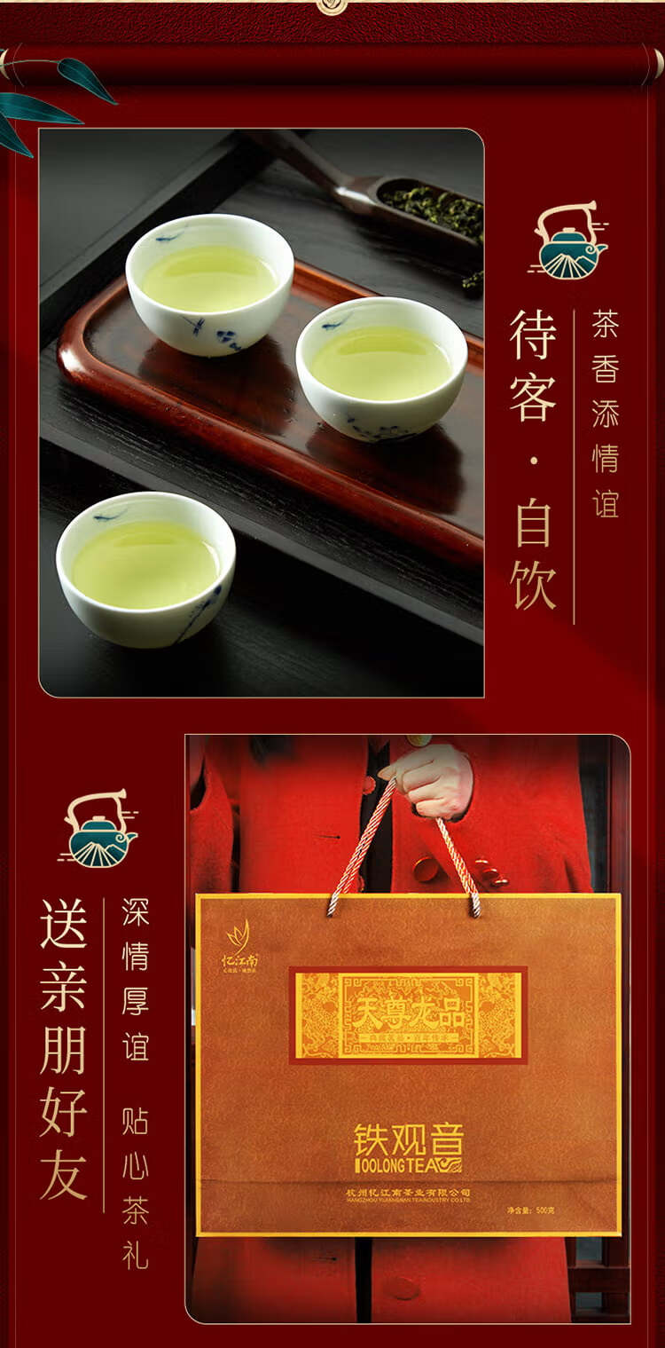 忆江南茶叶 特级清香铁观音乌龙茶天尊龙品茶叶礼盒500g 端午送礼送长辈