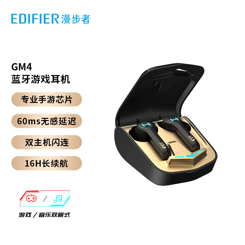 漫步者(EDIFIER)HECATE GM4升级版 蓝牙耳机真无线TWS入耳式游戏音乐运动耳麦防水 通用苹果安卓手机 黑金色
