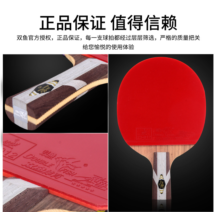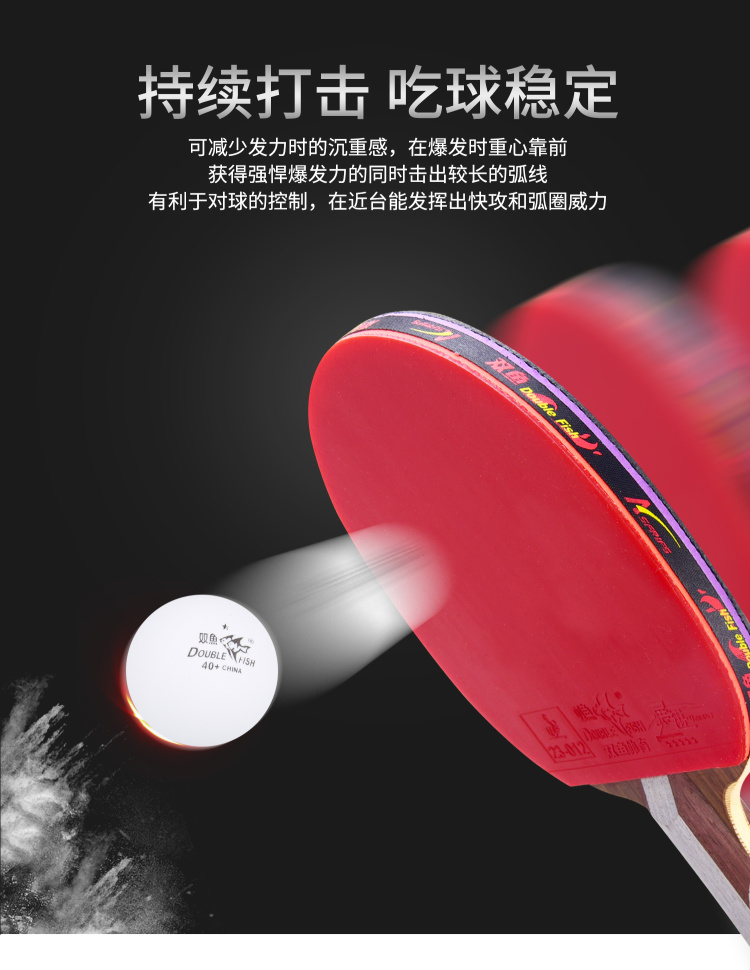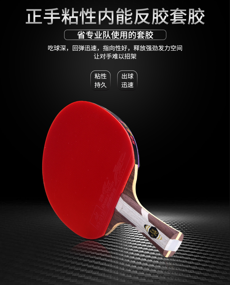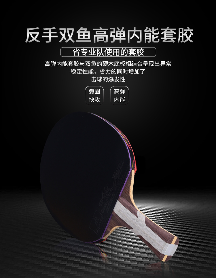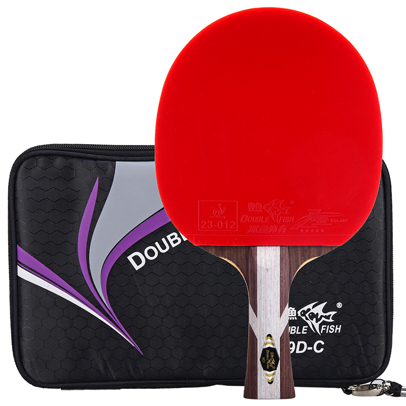 双鱼乒乓球拍横拍进攻型 9星九星兵乓球拍双面反胶 9D-C 长柄