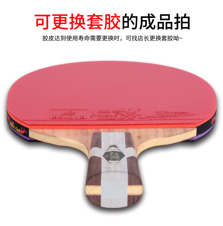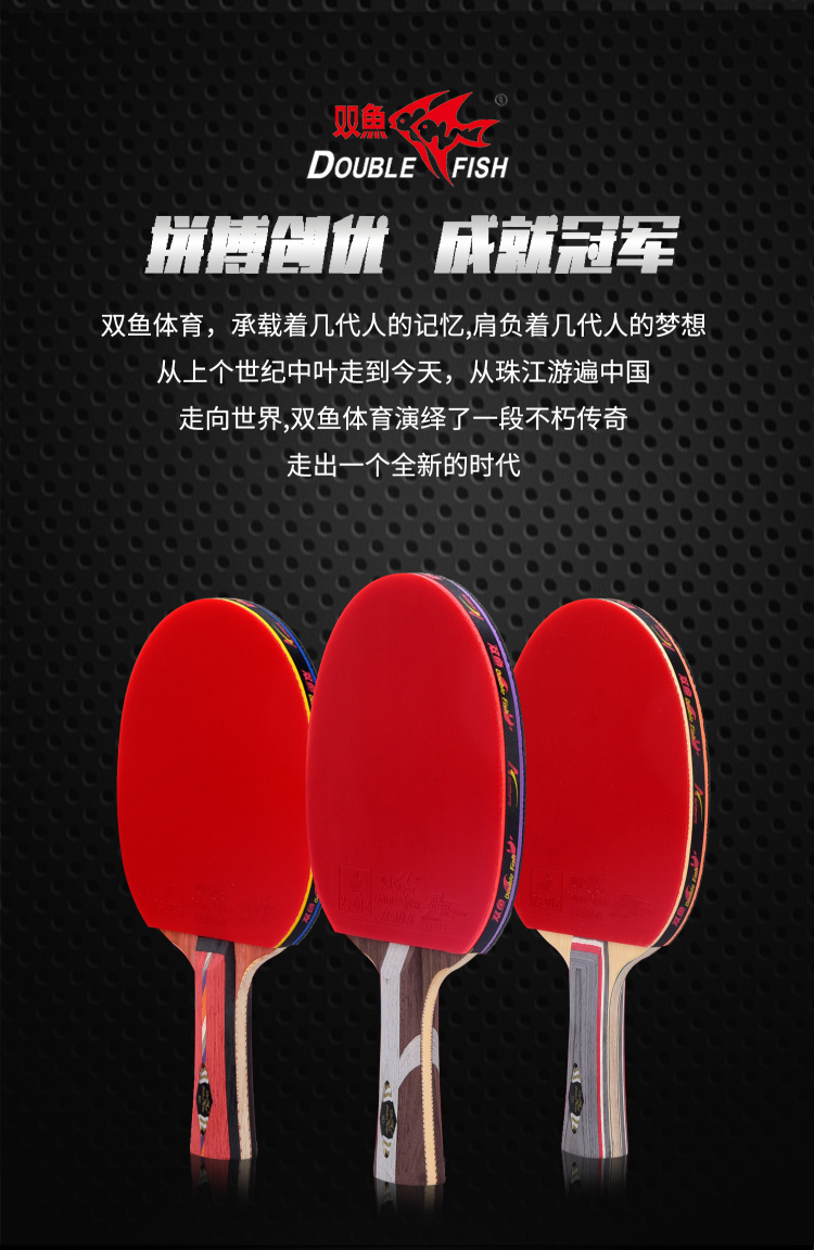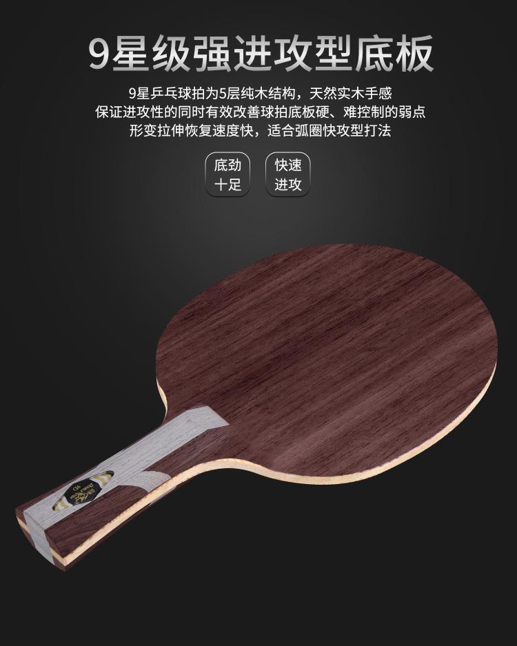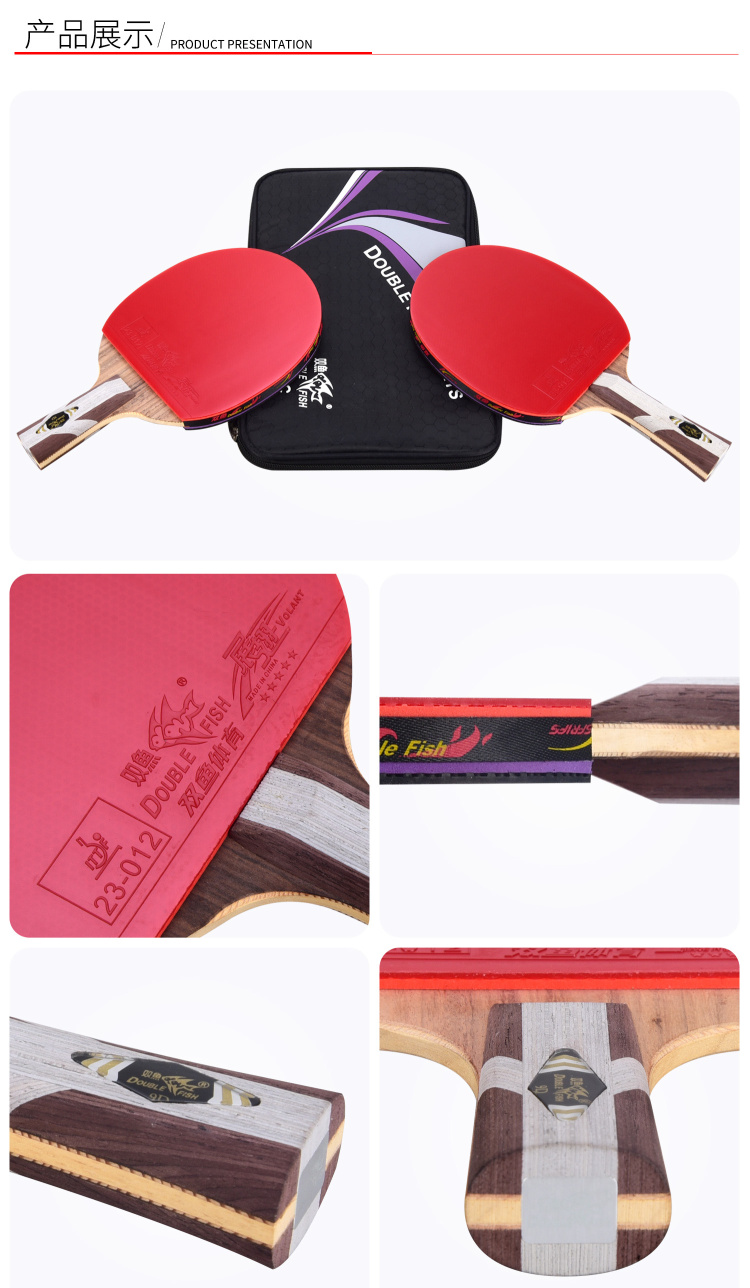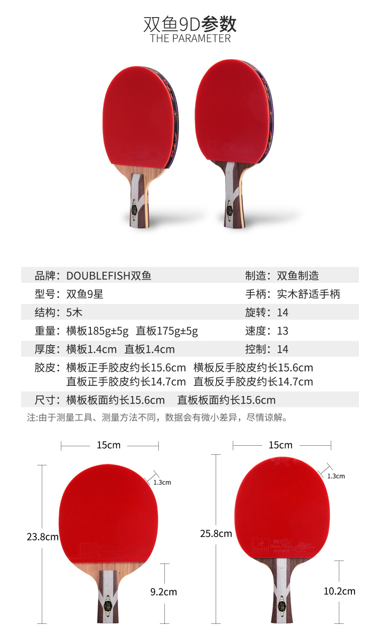 双鱼乒乓球拍横拍进攻型 9星九星兵乓球拍双面反胶 9D-C 长柄