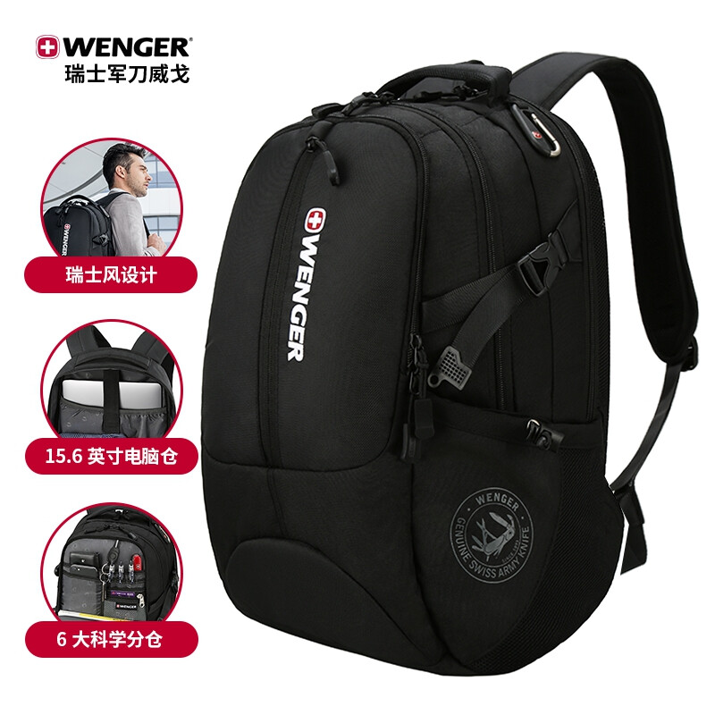 威戈(WENGER)瑞士军刀15.6英寸电脑包户外双肩书包背包男黑色SAB86813109048