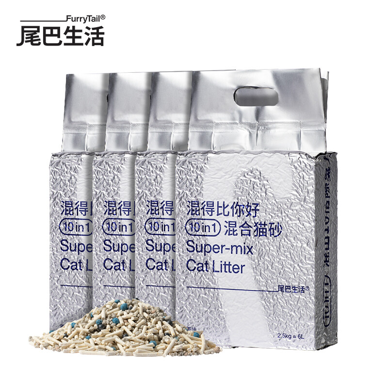尾巴生活(FURRYTAIL)混合猫砂 2.5kg*4袋 膨润土结团无尘猫咪用品(新老装随机发货)