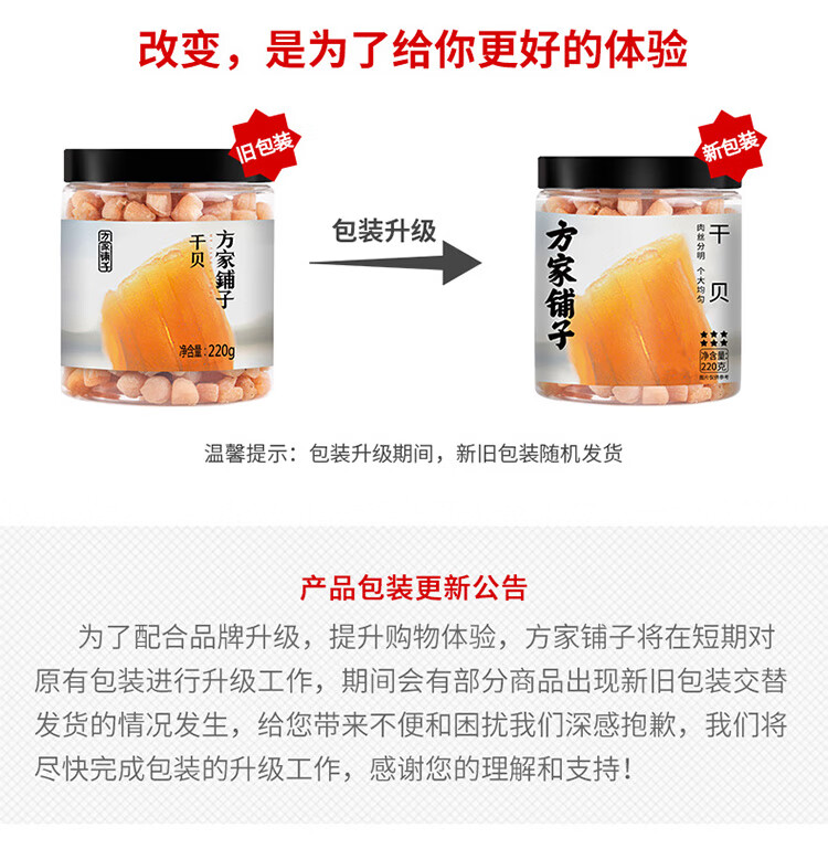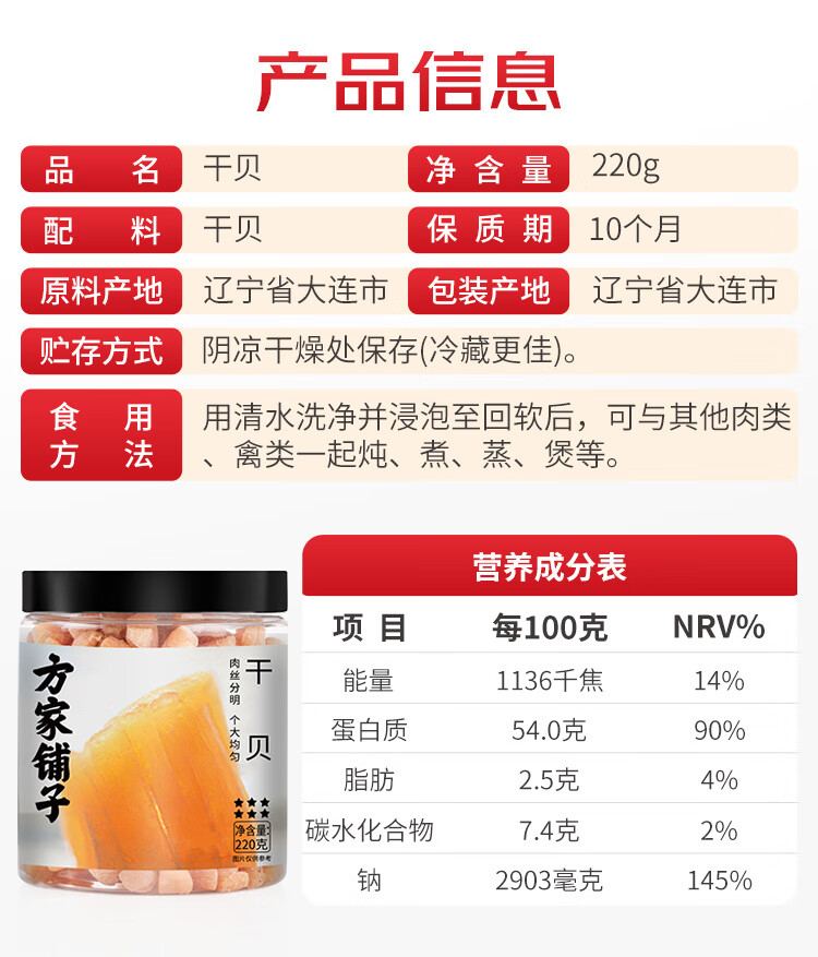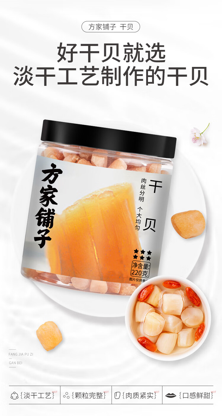 方家铺子 六星淡干干贝220g/罐 海鲜干货淡干瑶柱扇贝 火锅食材 始于1906