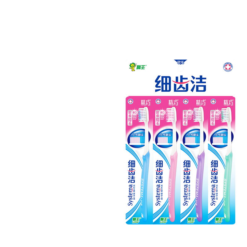 狮王(Lion)细齿洁精巧牙刷(新老包装、颜色随机发放)规格:4支装产地:青岛保质期:无适合人群:所有人群主要材质:PBT速干软毛功效及特点:0.02毫米细毛、深入口腔、便捷操控