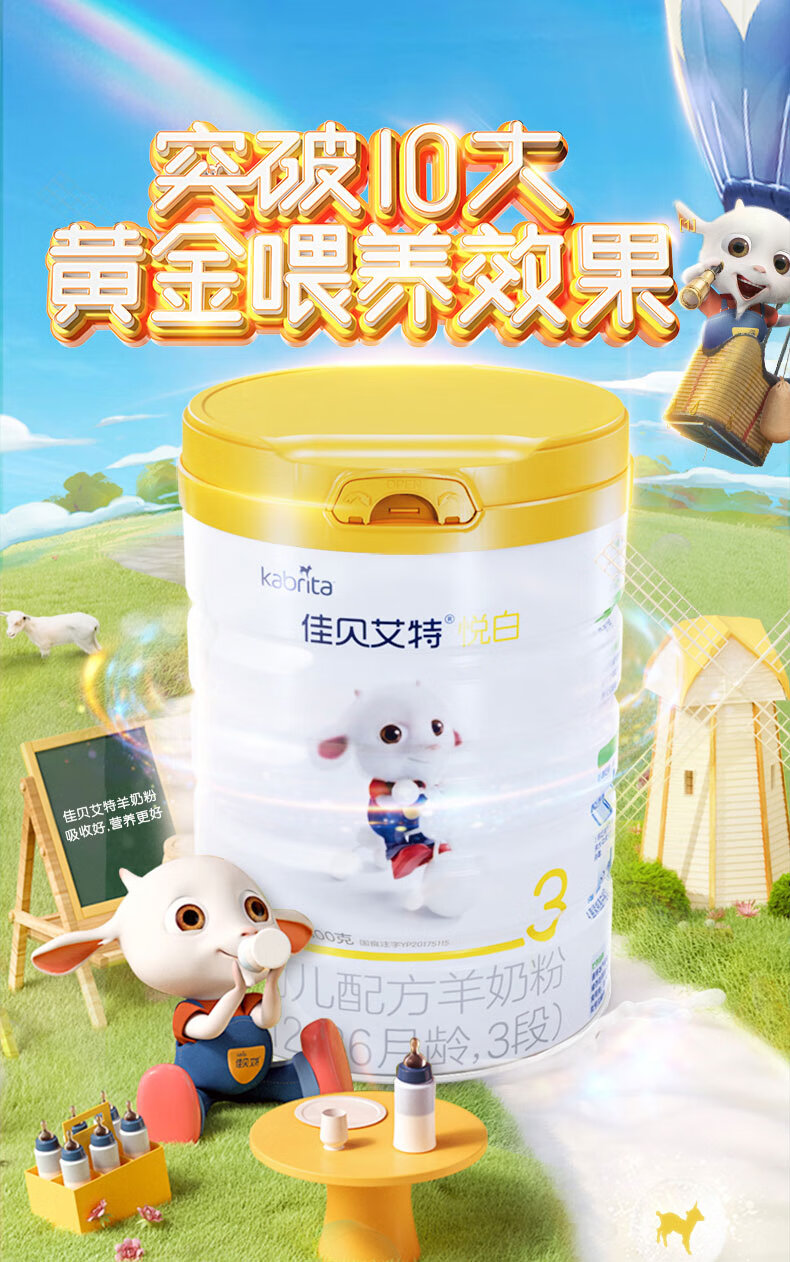 佳贝艾特(Kabrita)悦白婴幼儿配方羊奶粉 3段1-3岁婴幼儿适用800克荷兰原装进口