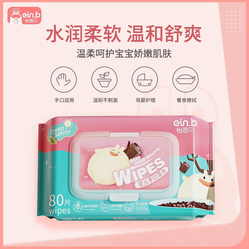 怡恩贝(ein.b)婴儿湿巾 湿纸巾 护肤柔湿巾 80片*15包 手口湿巾纸 儿童湿用抽纸