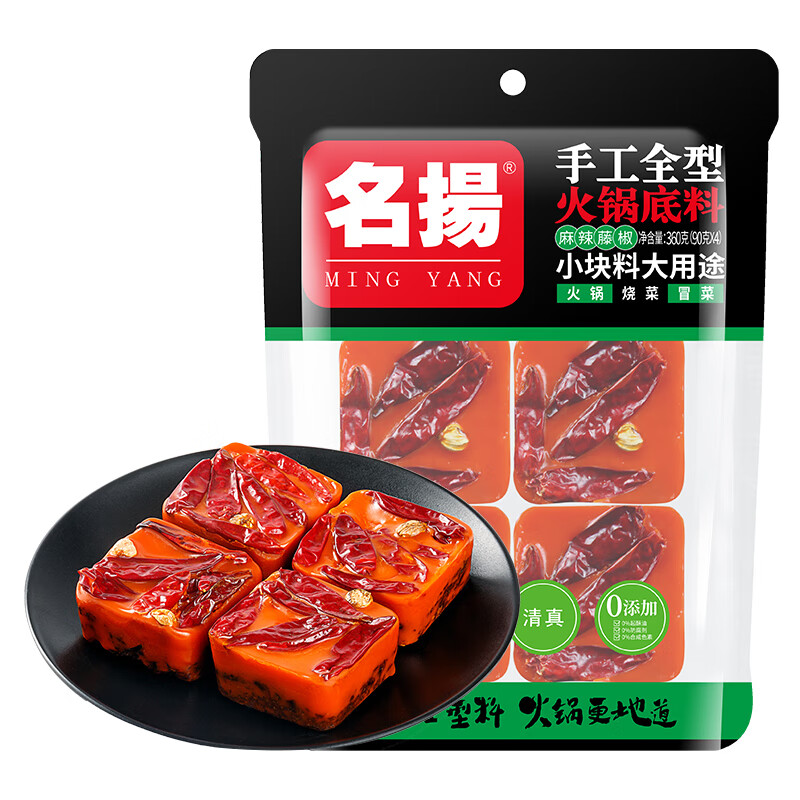 名揚名扬牛油火锅底料麻辣藤椒味360g(90g*4袋)火锅冒菜底料包