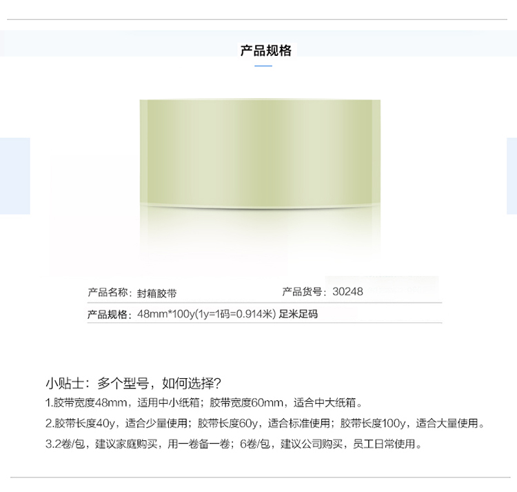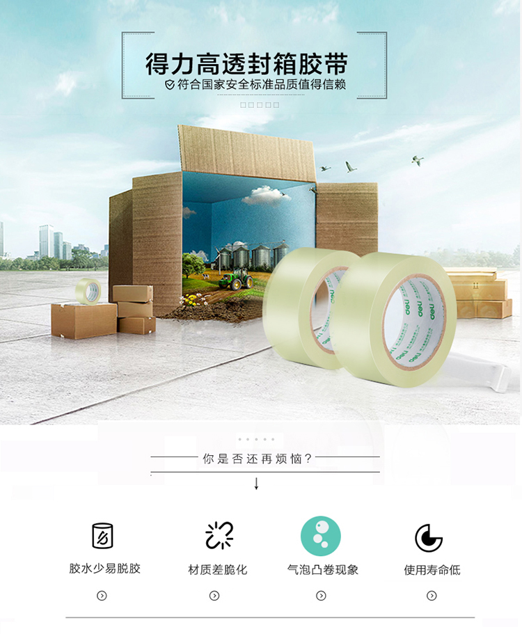 得力(deli)高品质高透明封箱胶带打包胶带 48mm*100y*50um(91.4m/卷) 1卷装 办公用品 30248