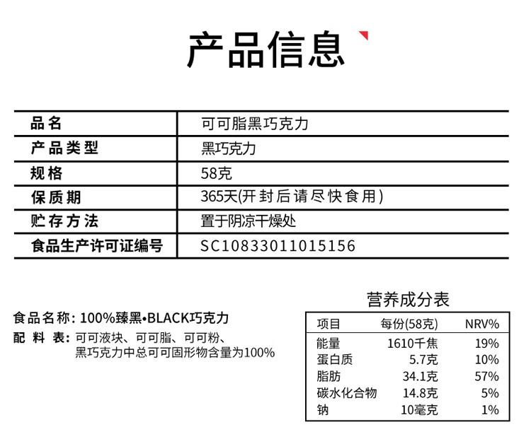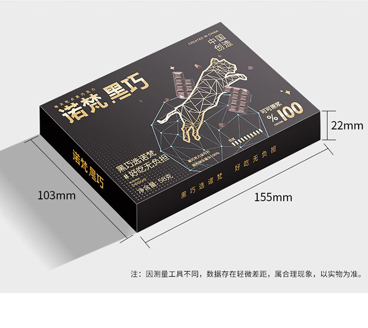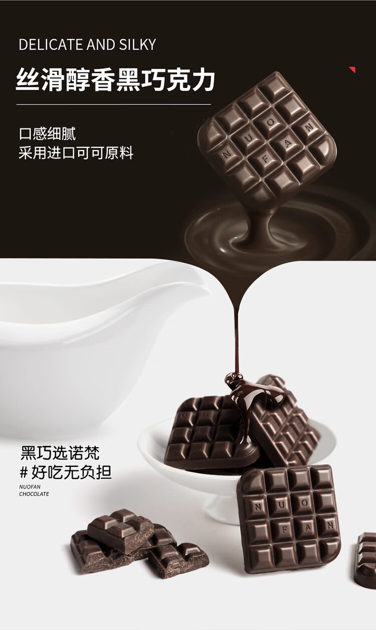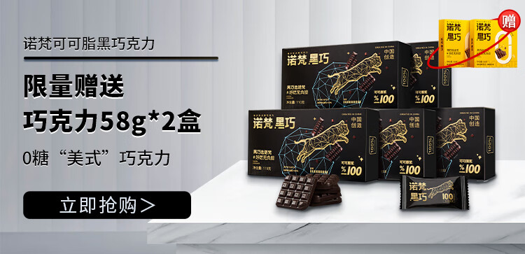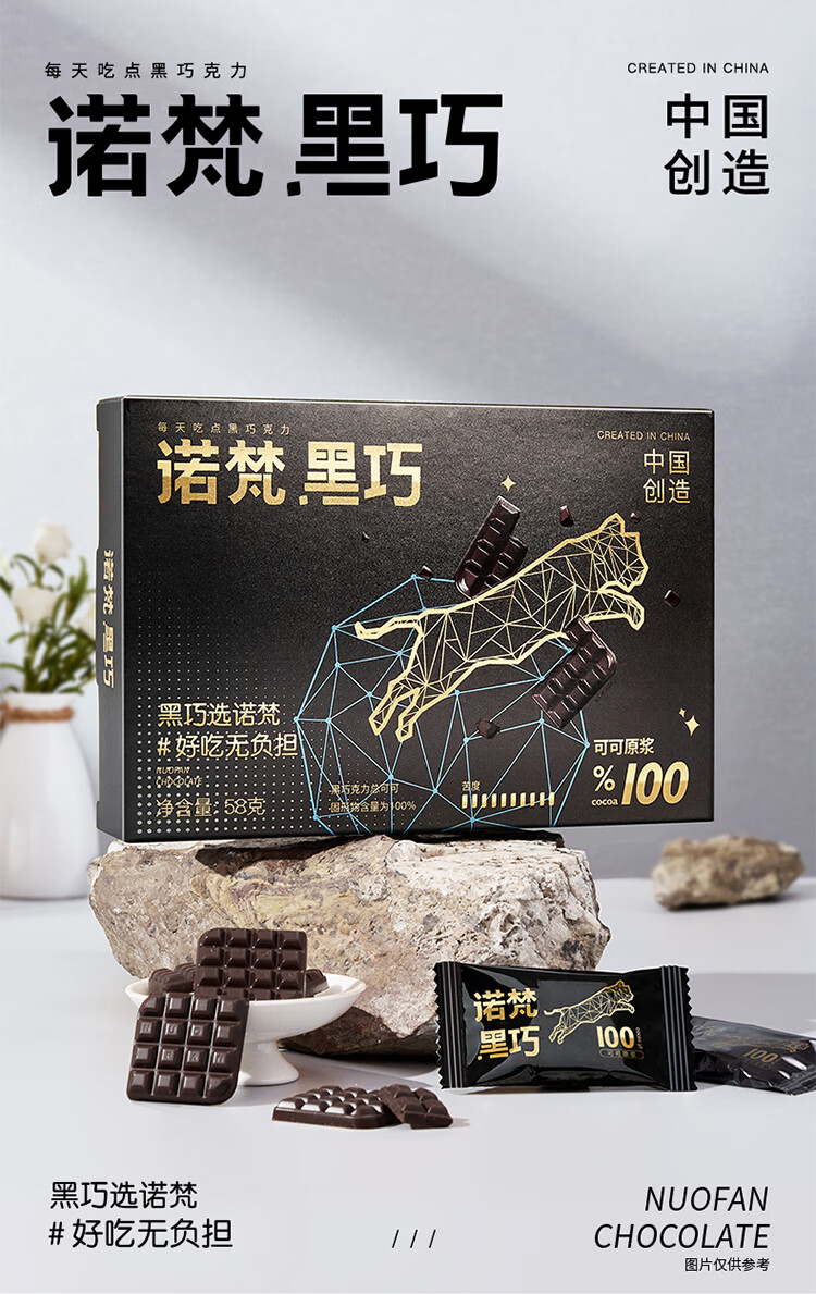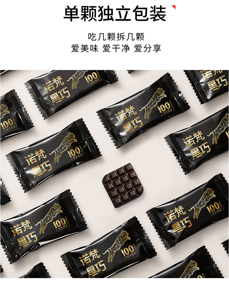 诺梵纯黑可可脂黑巧克力100%特苦无添加蔗糖健身零食搞怪伴手礼58g