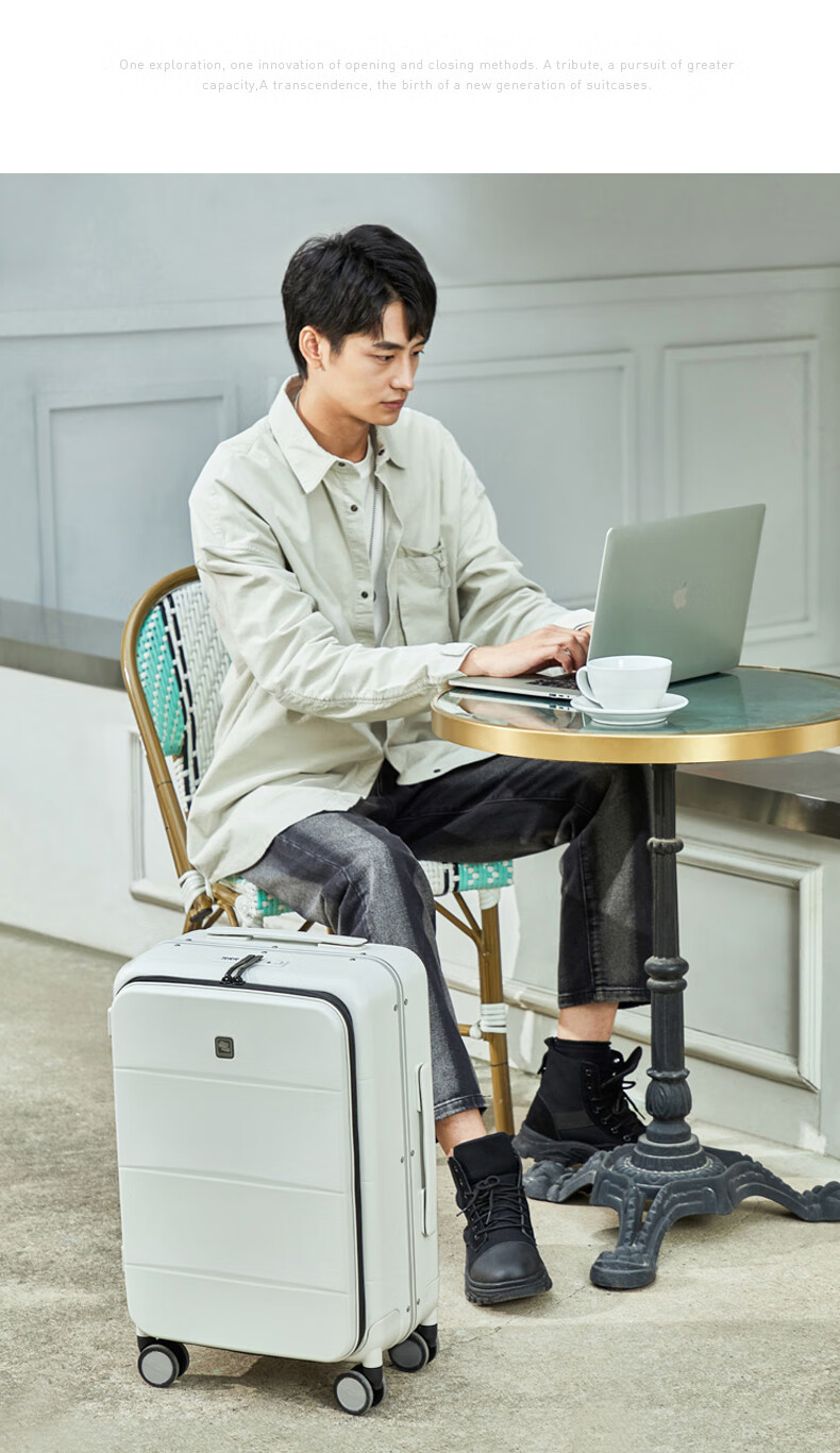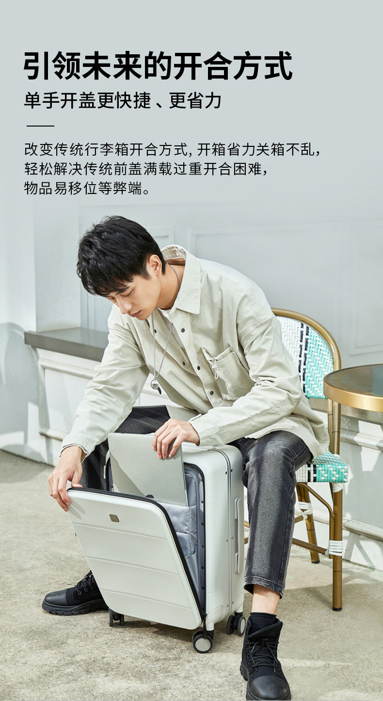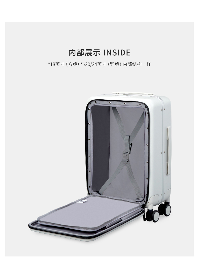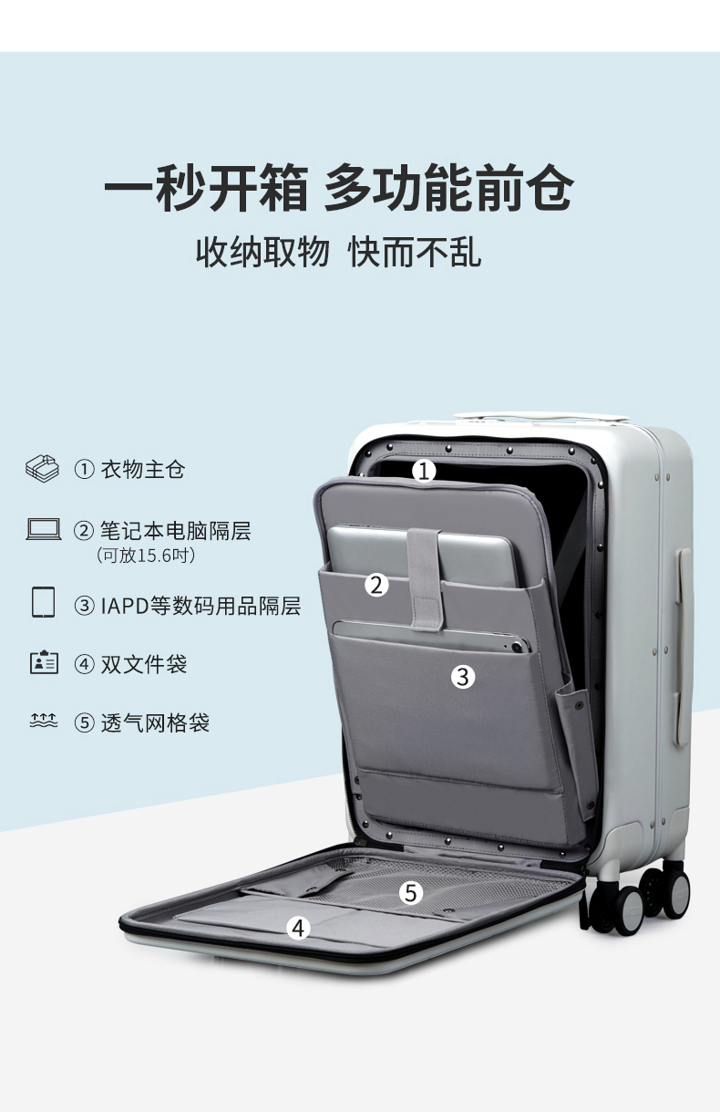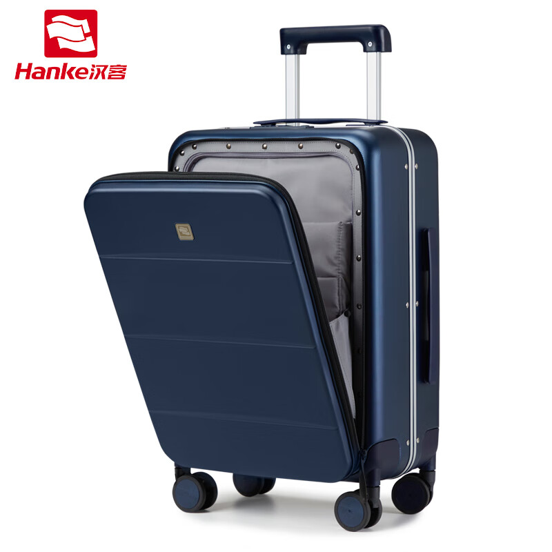 汉客(HANKE)前开盖拉杆箱铝框箱大容量行李箱旅行箱24英寸黛蓝色男女密码箱