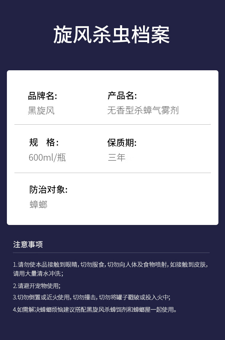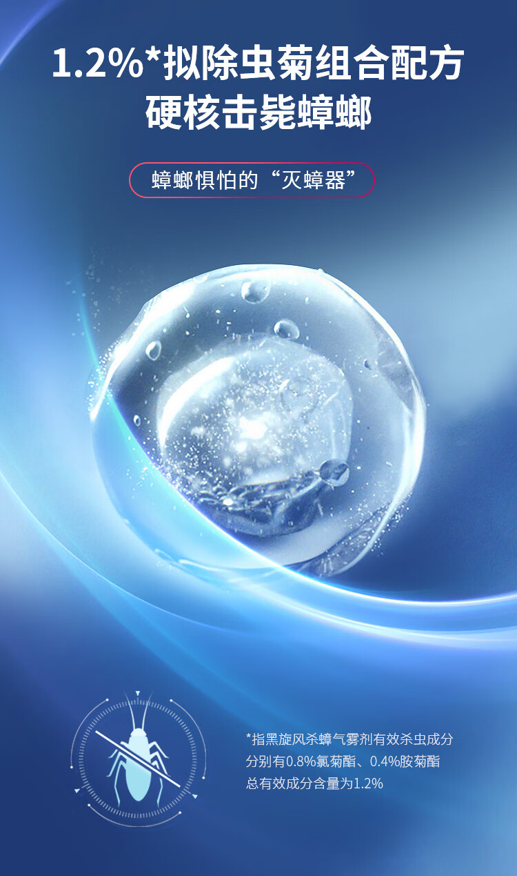 黑旋风杀虫剂杀蟑气雾剂蟑螂药家用室内喷雾灭蟑除虫杀虫水无香型600ml