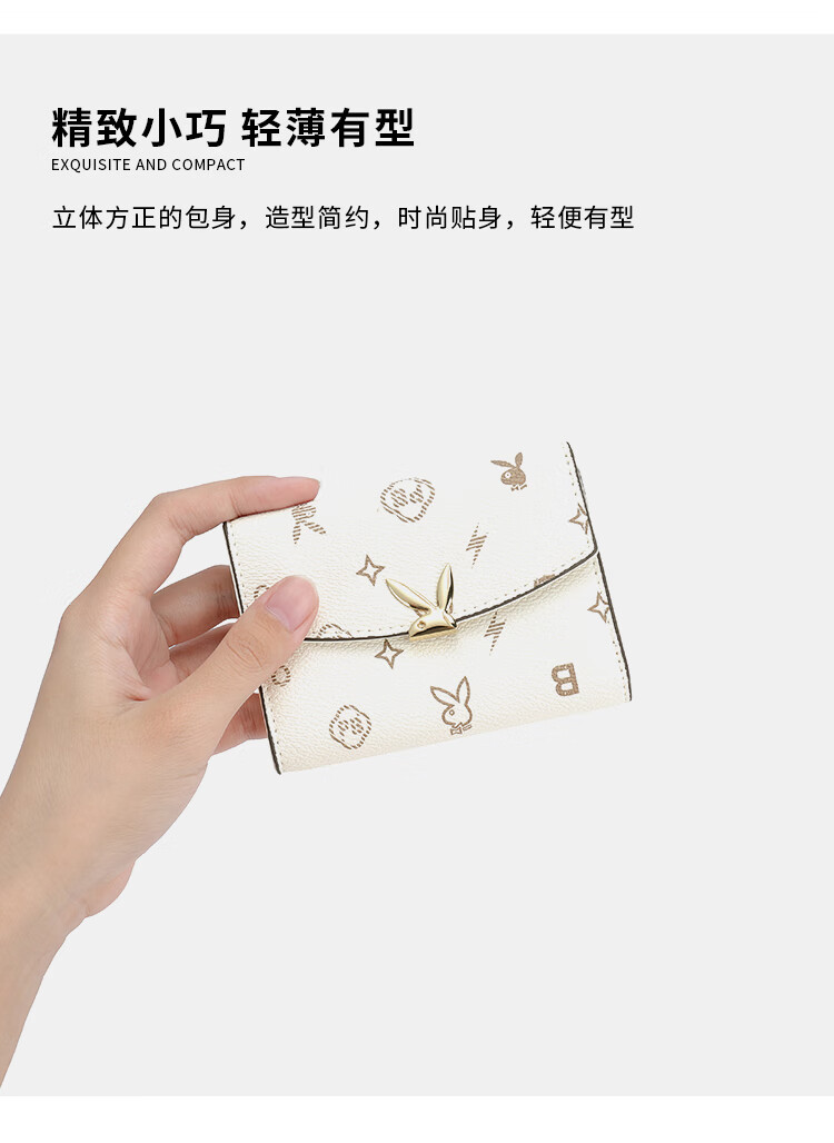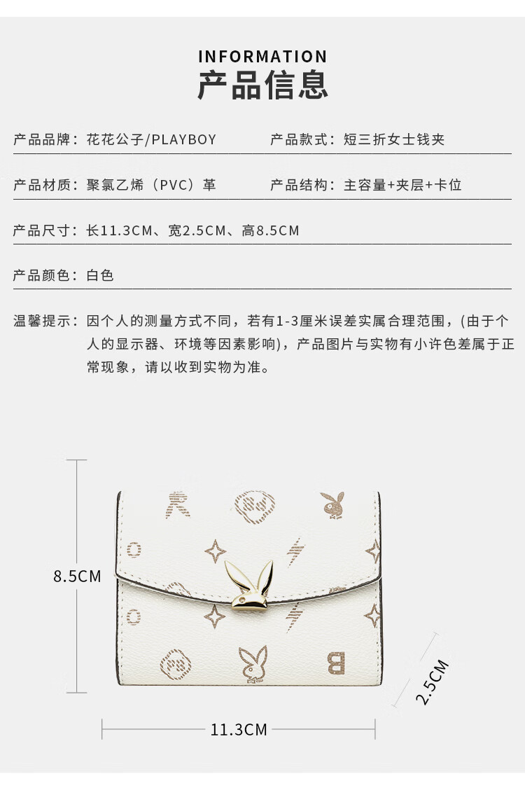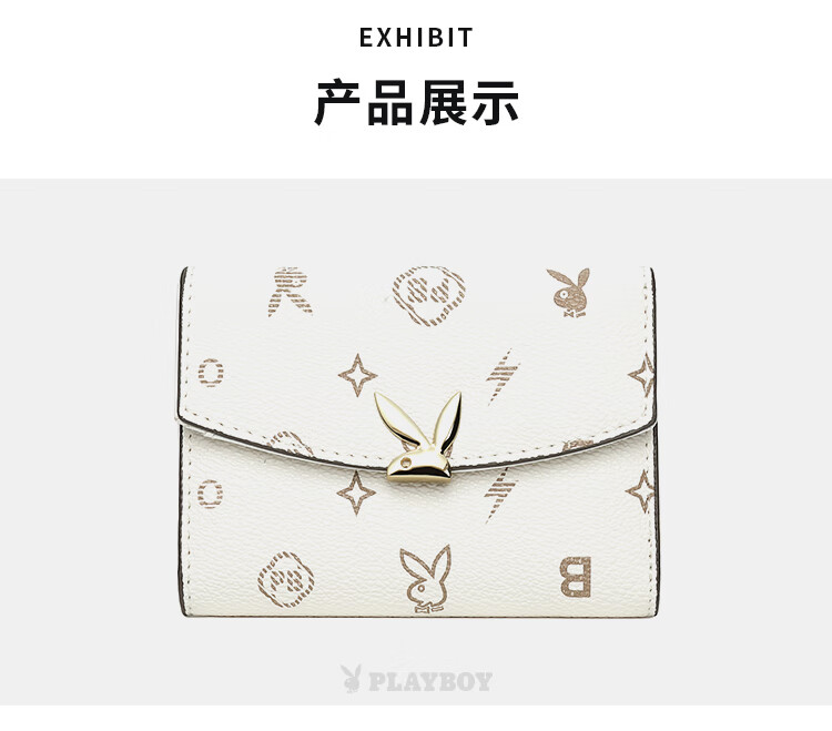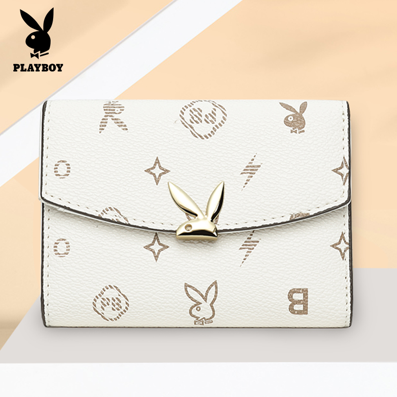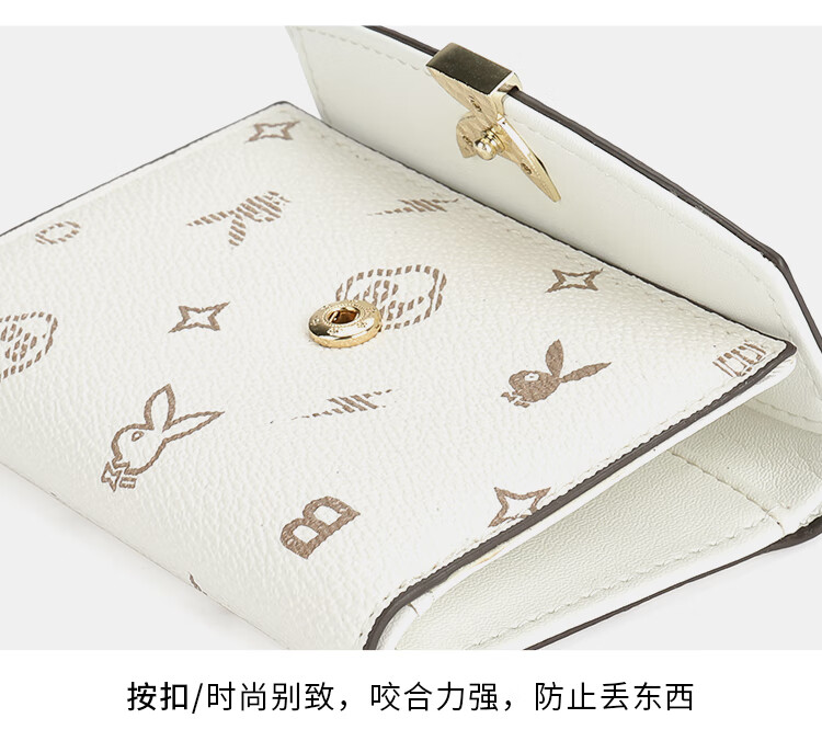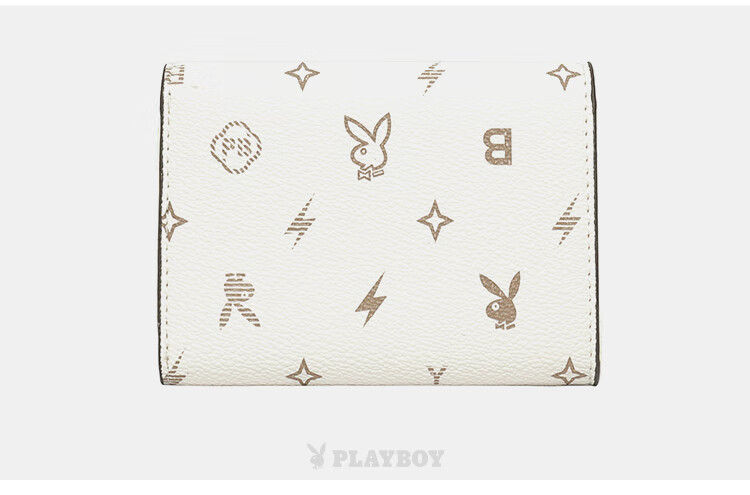 花花公子(PLAYBOY)钱包女士短款三折钱票夹大容量卡包印花潮百搭手拿包时尚零钱包老婆生日礼物 白色