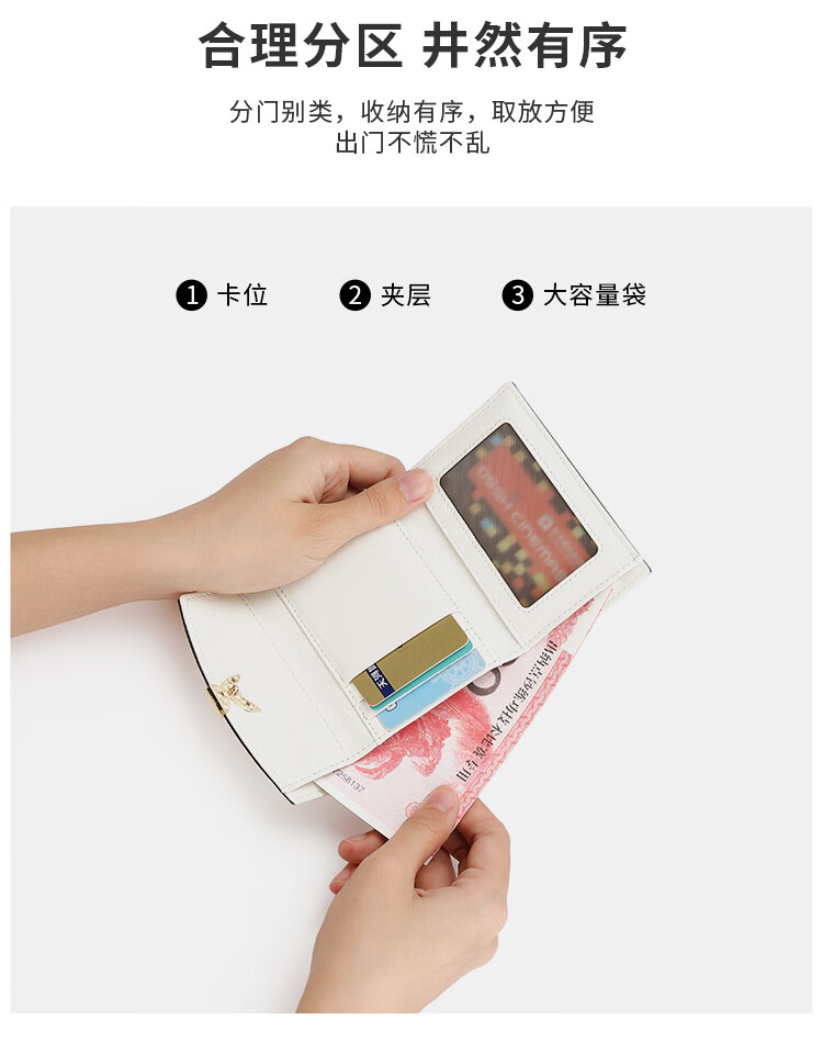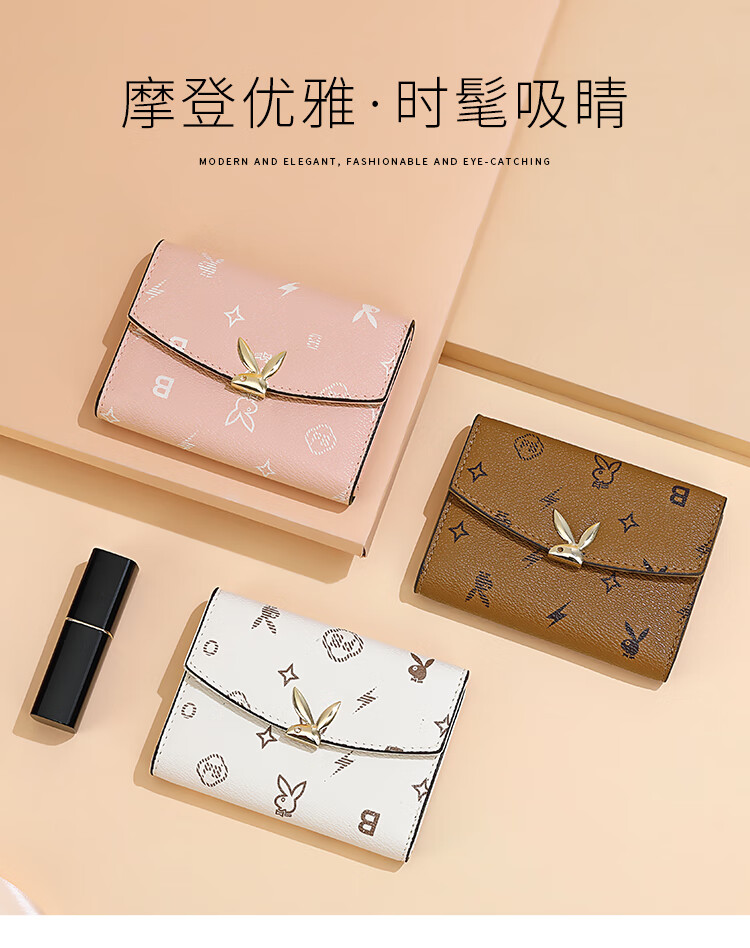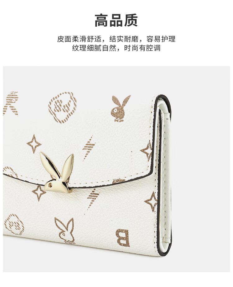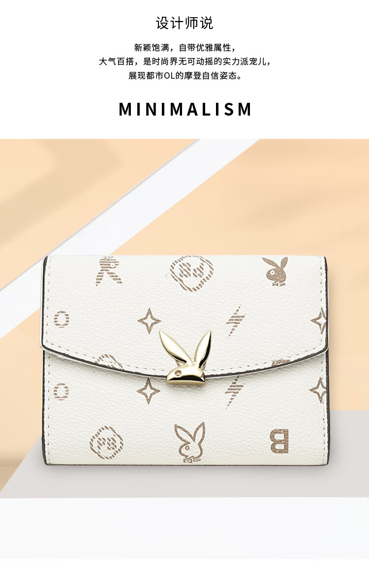 花花公子(PLAYBOY)钱包女士短款三折钱票夹大容量卡包印花潮百搭手拿包时尚零钱包老婆生日礼物 白色