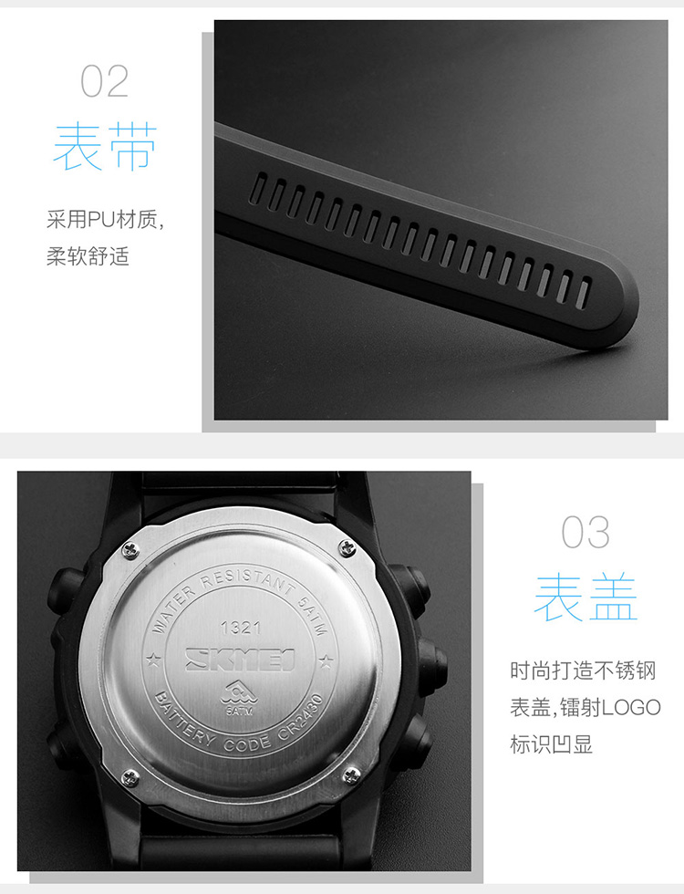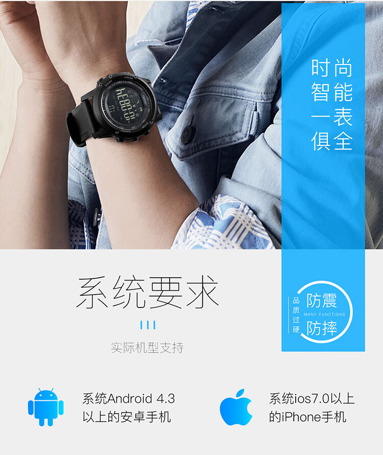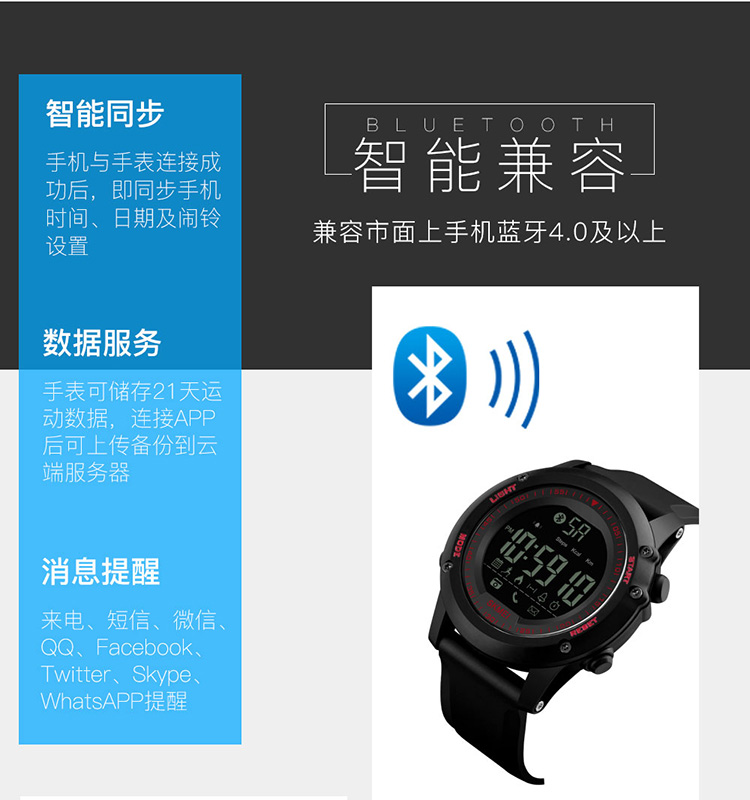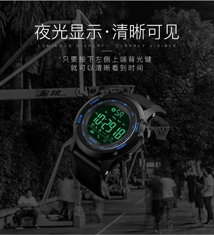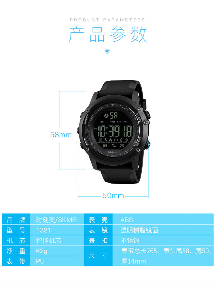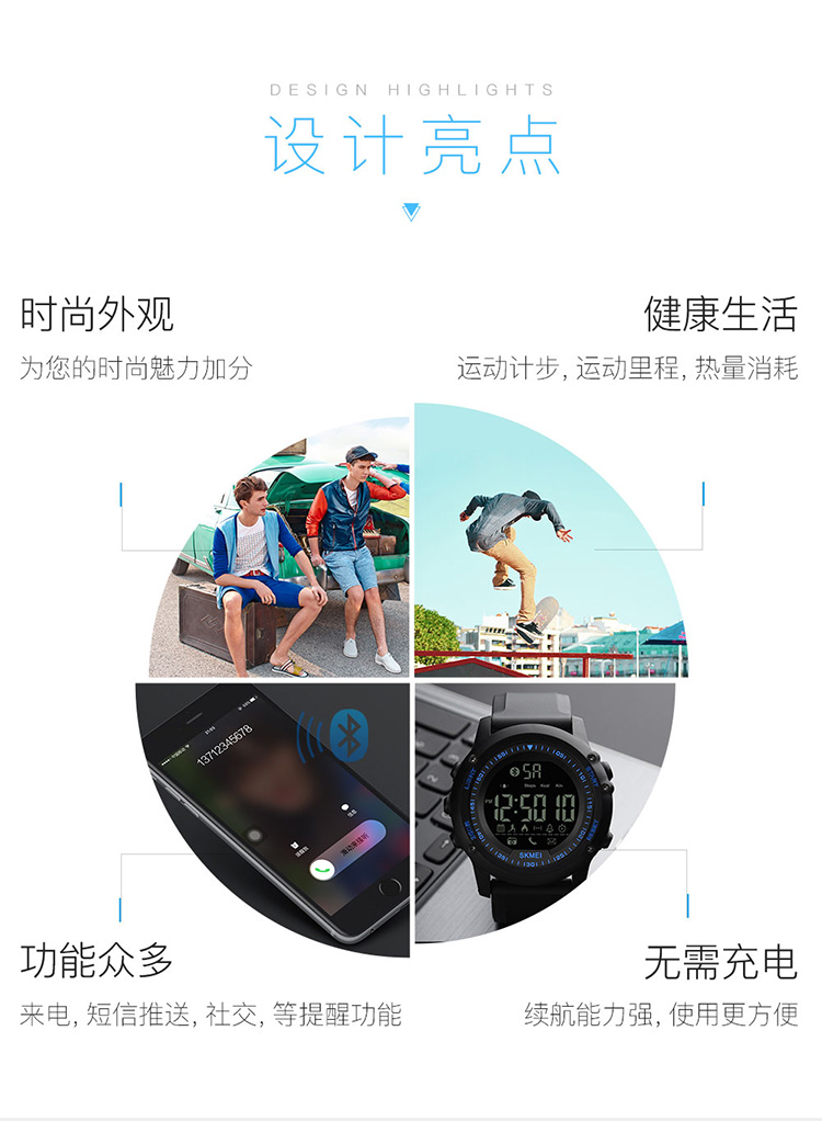 时刻美(skmei)手表男智能运动手表儿童手环多功能计步蓝牙学生电子表1321蓝色