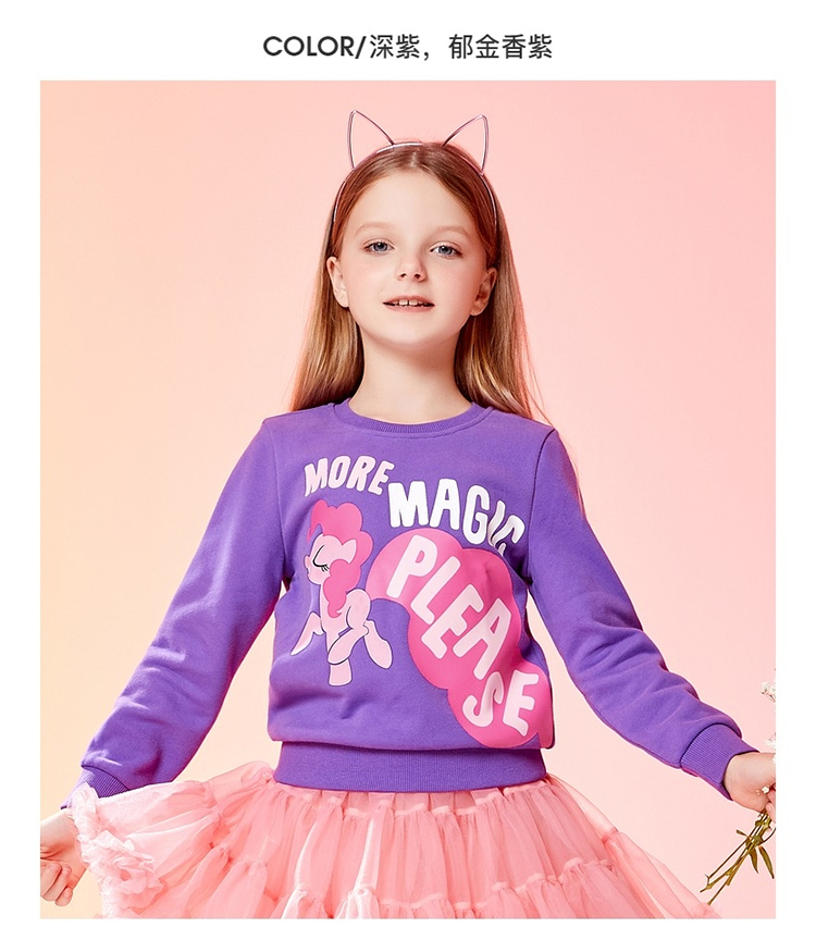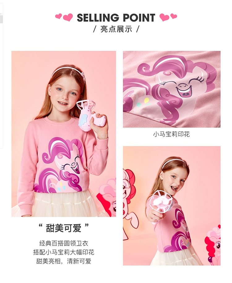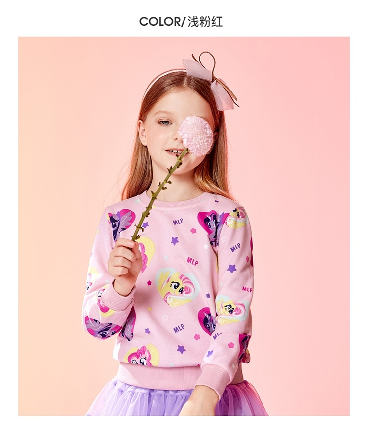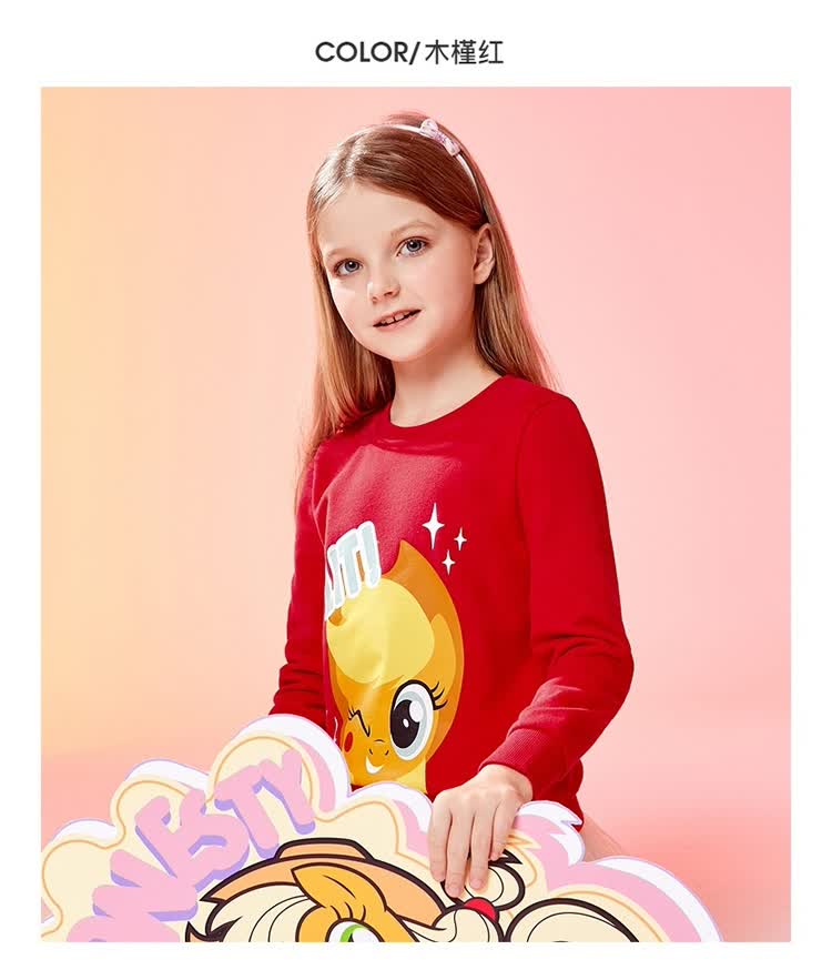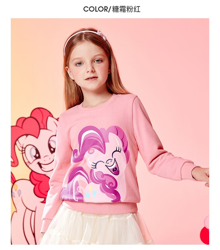 班尼路(Baleno)童装2022春秋款小马宝莉女童圆领卫衣长袖中大童上衣儿童 73R 木槿红130cm