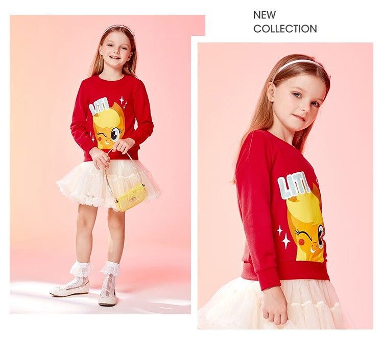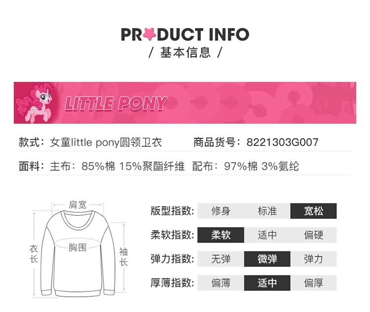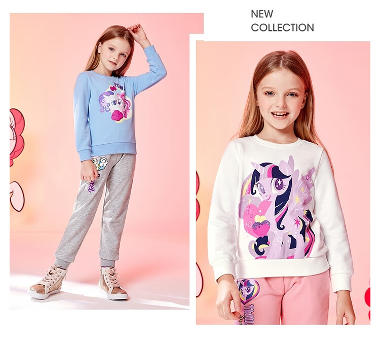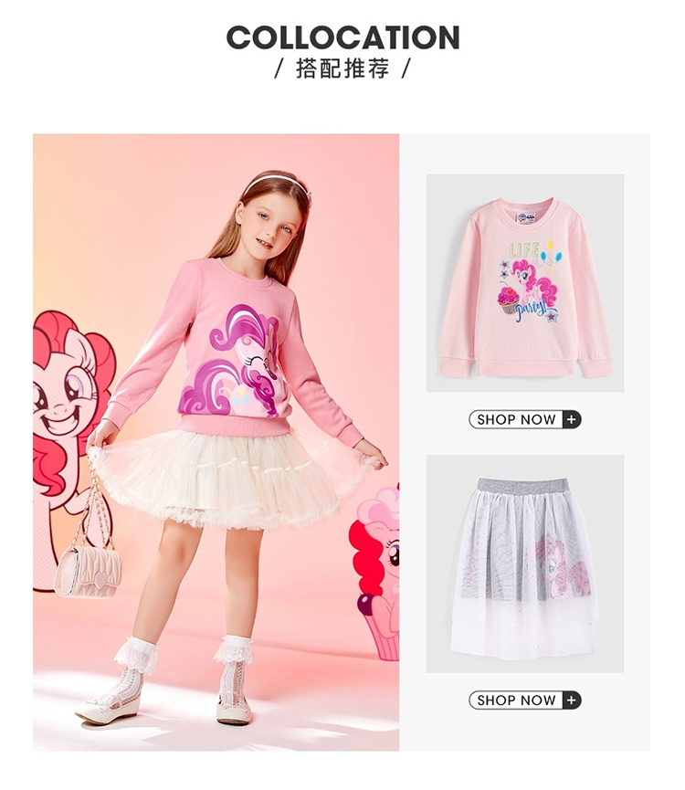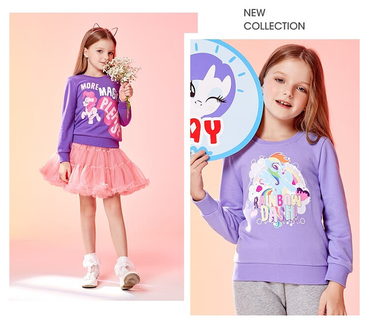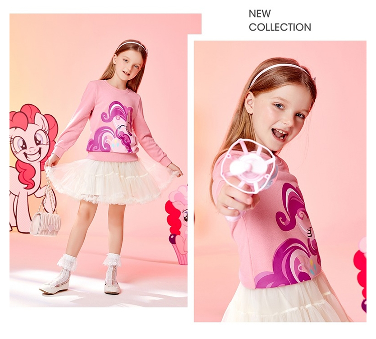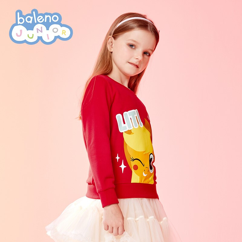 班尼路(Baleno)童装2022春秋款小马宝莉女童圆领卫衣长袖中大童上衣儿童 73R 木槿红130cm