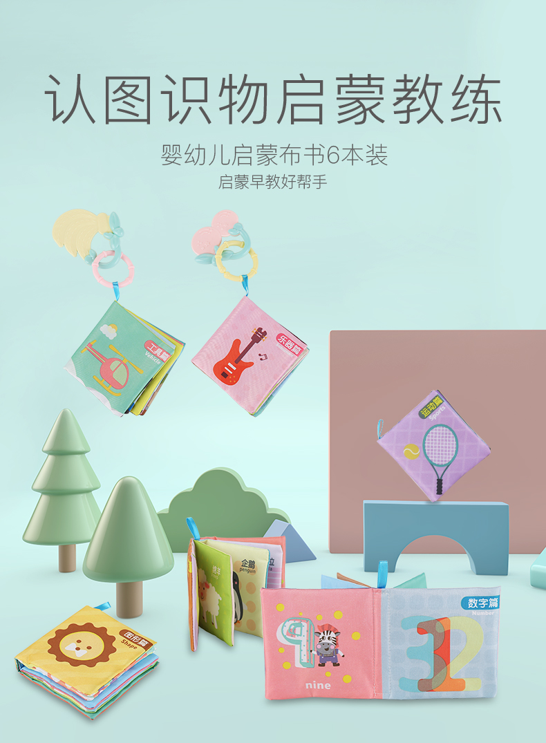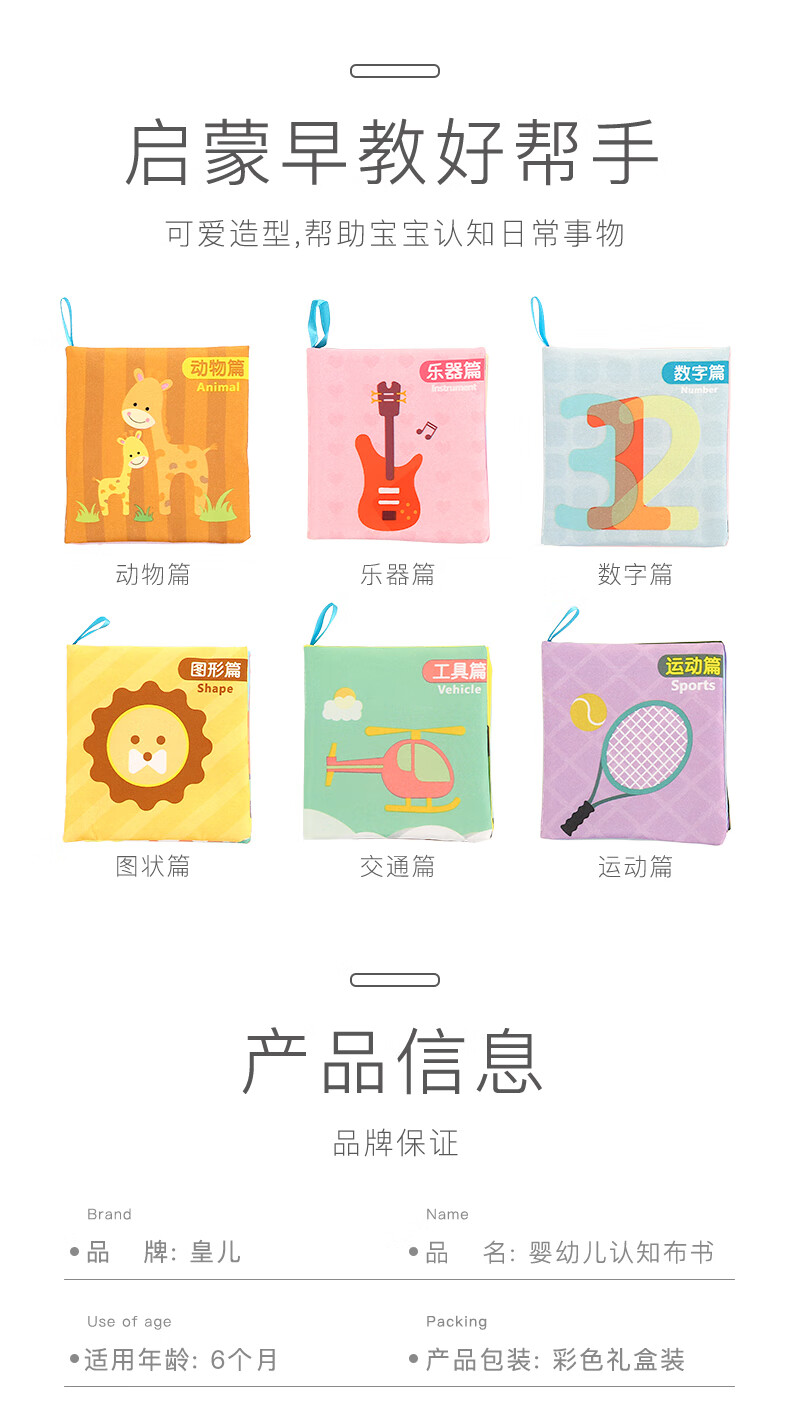 皇儿 婴儿布书早教启蒙0-1岁婴儿玩具撕不烂水洗儿童啃咬6本生日礼物