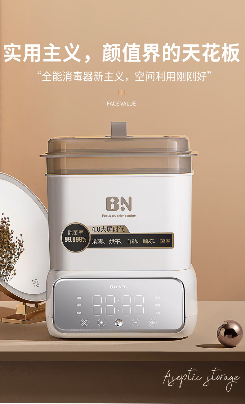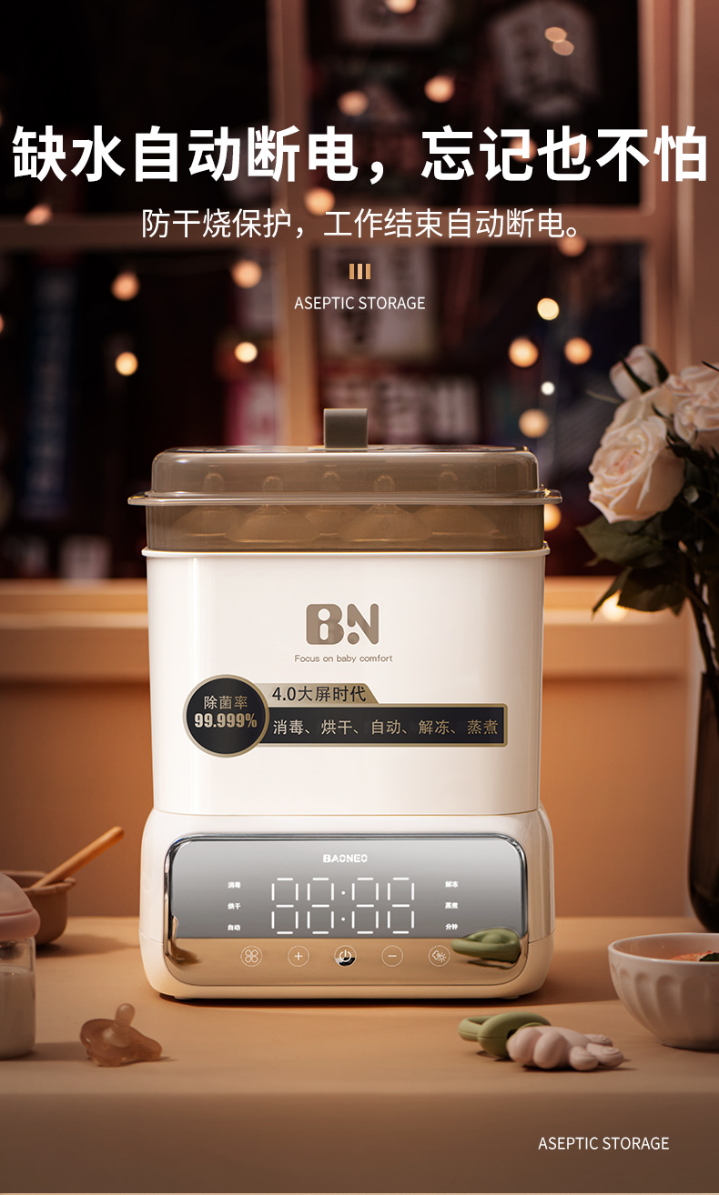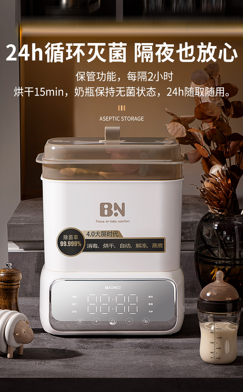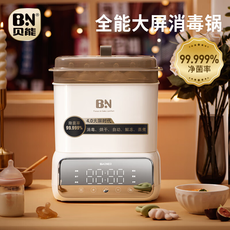 贝能(Baoneo)奶瓶消毒机消毒器带烘干二合一婴儿专用蒸汽消毒锅奶瓶器尤利尔白