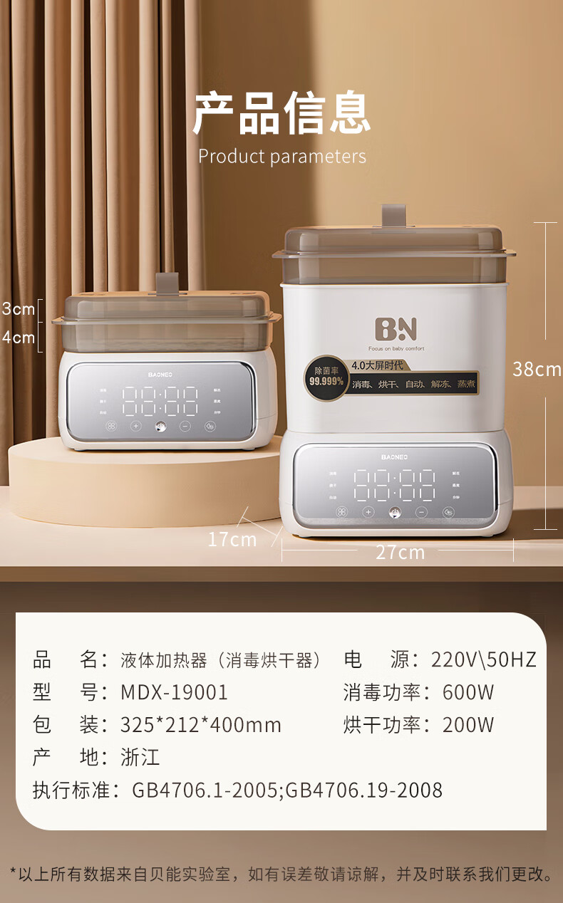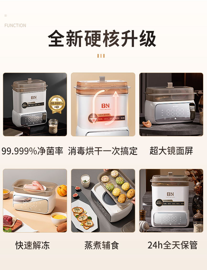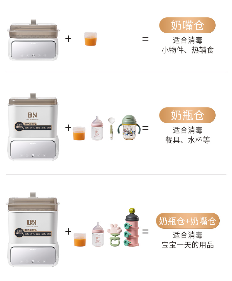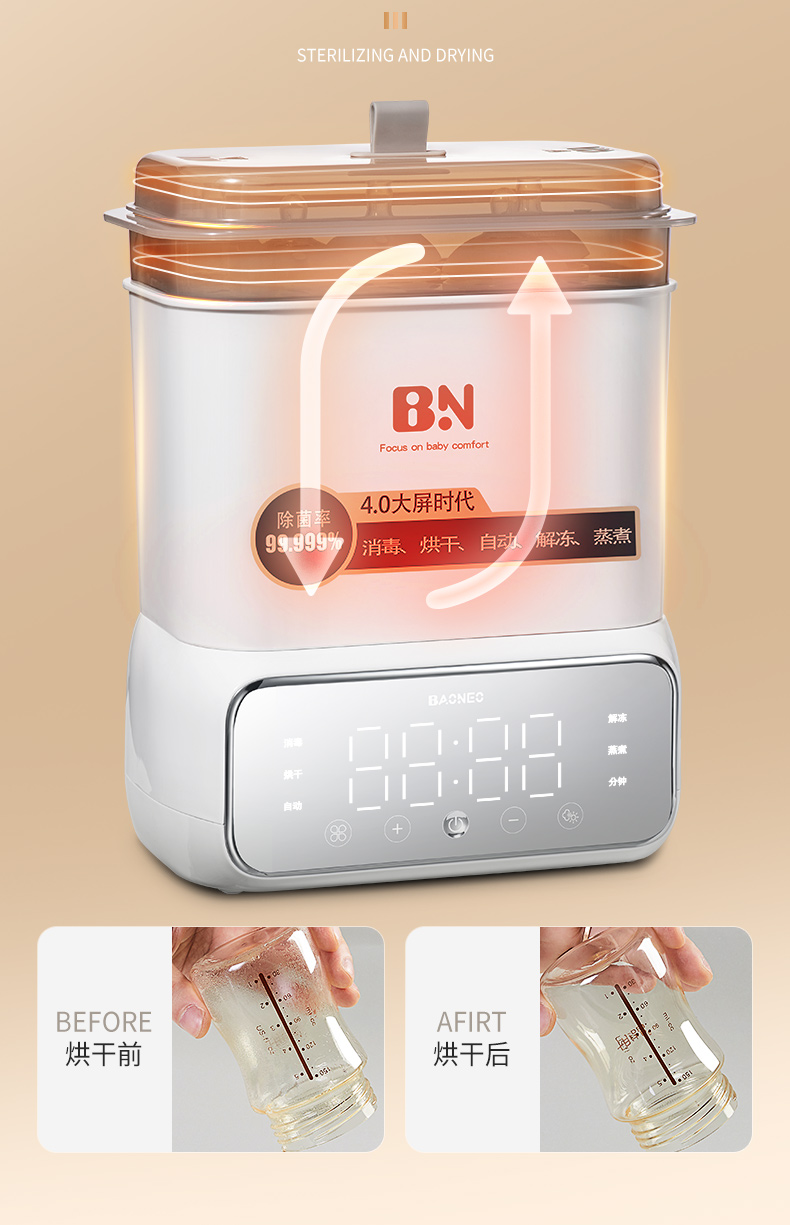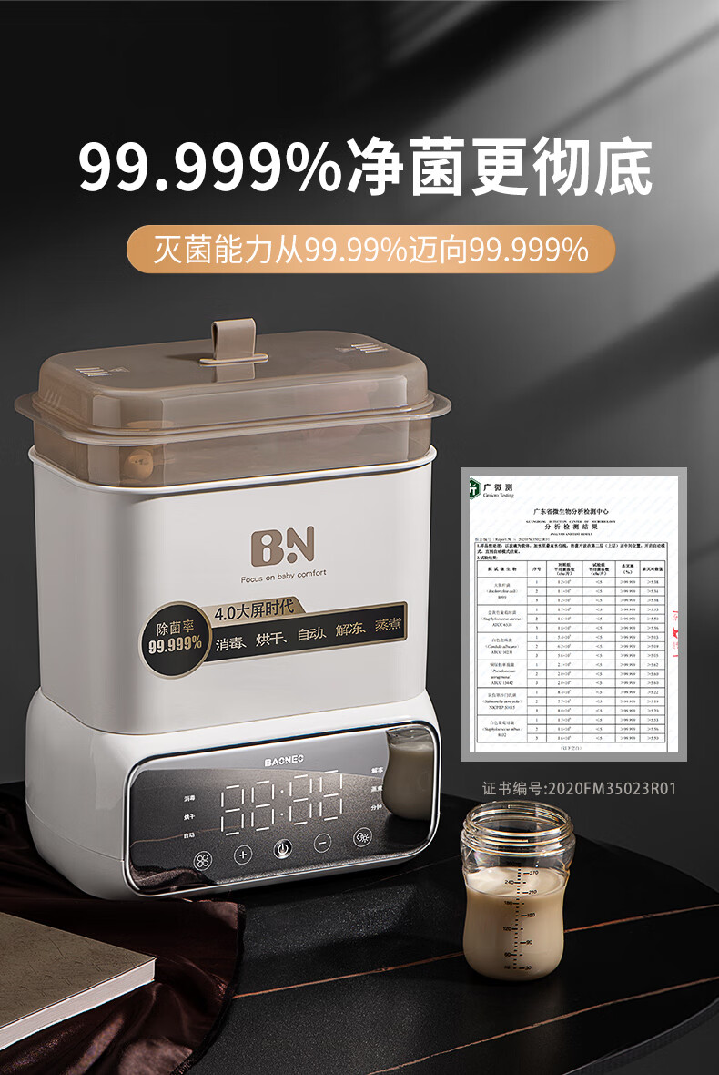 贝能(Baoneo)奶瓶消毒机消毒器带烘干二合一婴儿专用蒸汽消毒锅奶瓶器尤利尔白