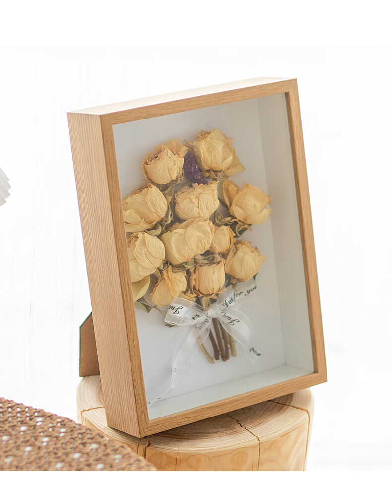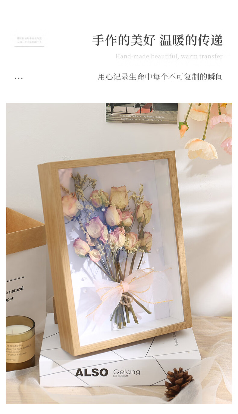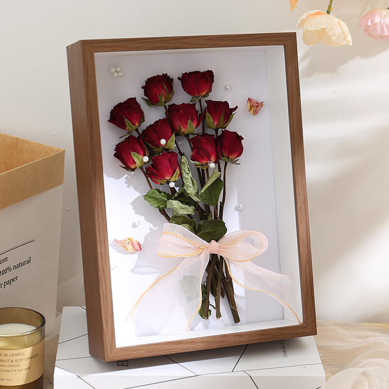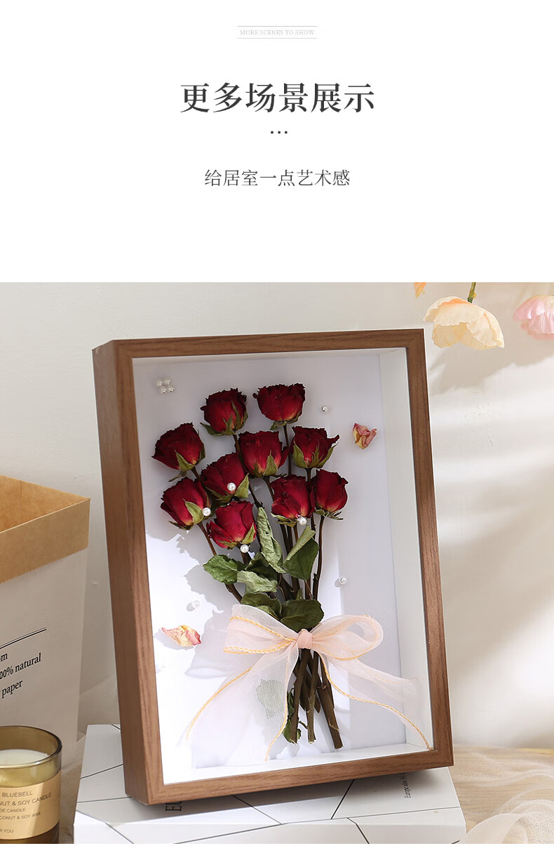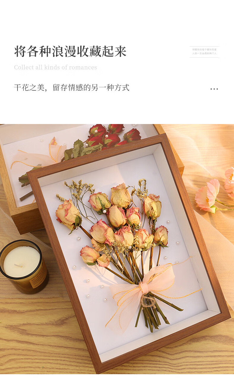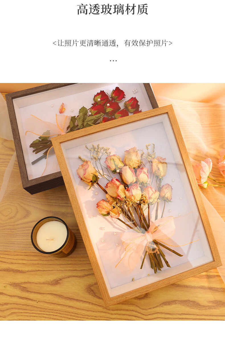 集简季立体中空干花相框摆台创意diy手工礼物永生花玫瑰标本框架 咖色