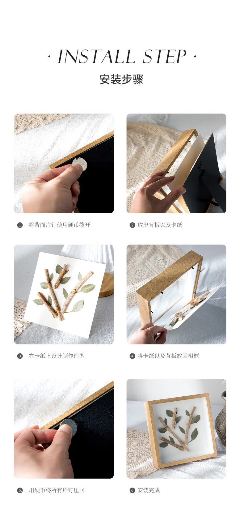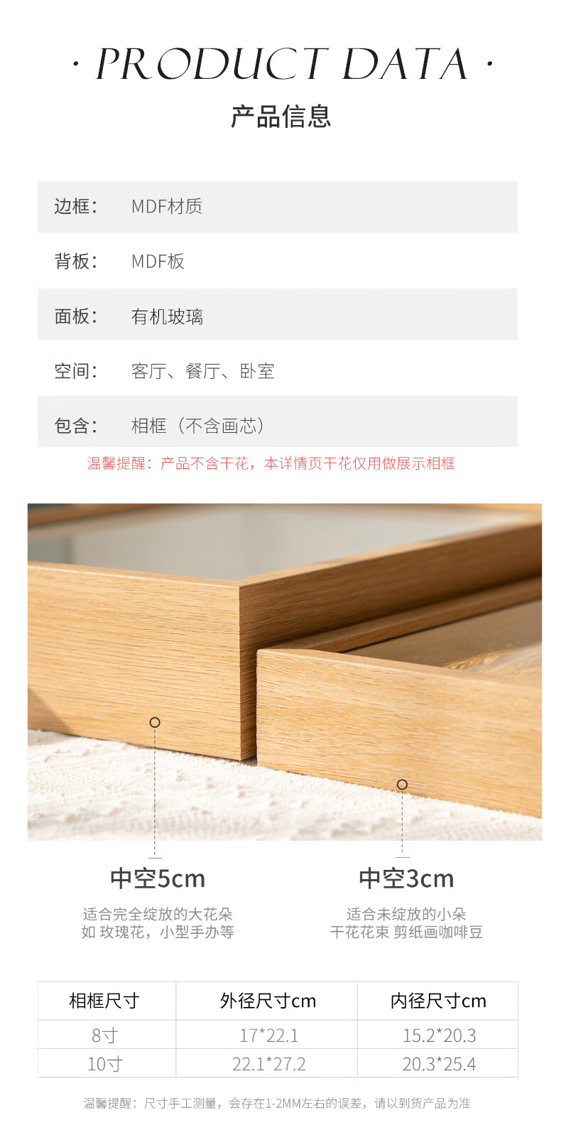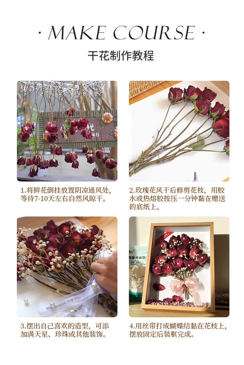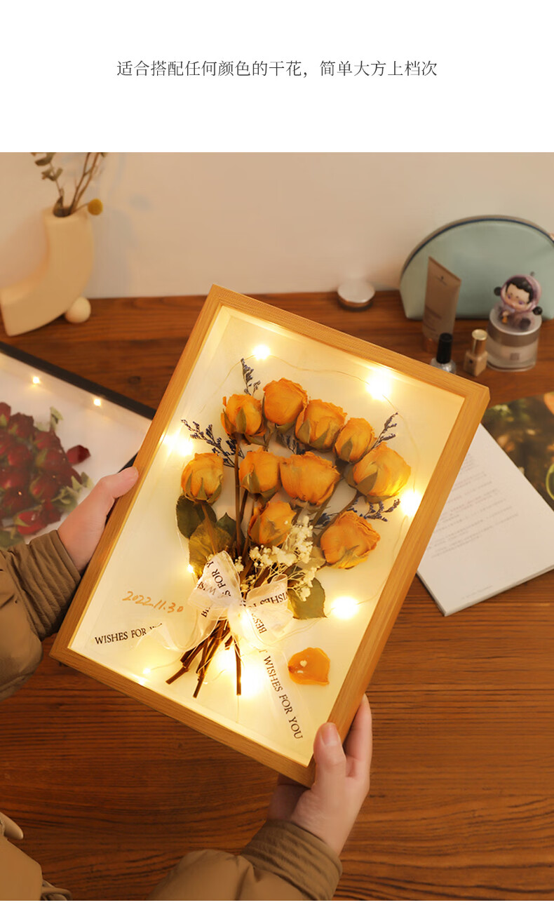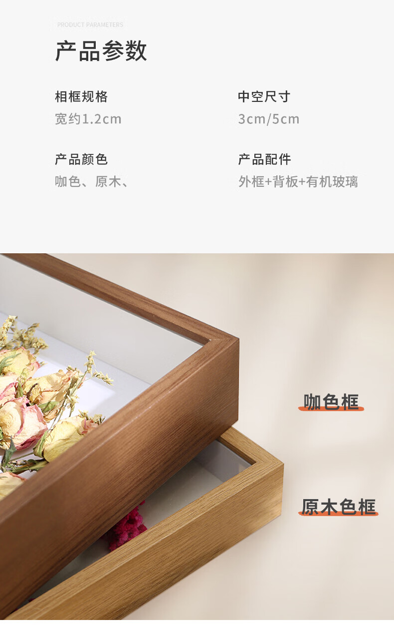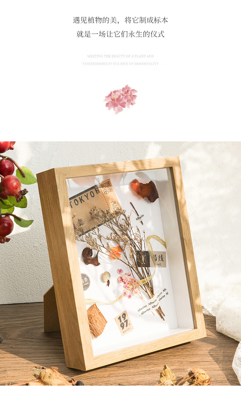 集简季立体中空干花相框摆台创意diy手工礼物永生花玫瑰标本框架 咖色