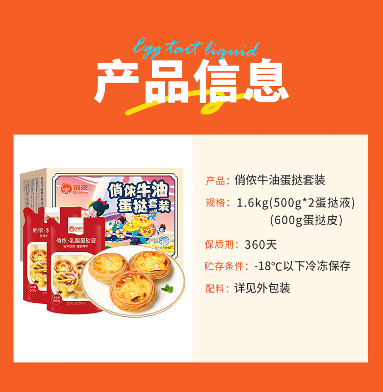 俏侬牛油蛋挞套装1.6kg 蛋挞皮30只+乳脂挞液500g*2 空气炸锅烤箱烘焙