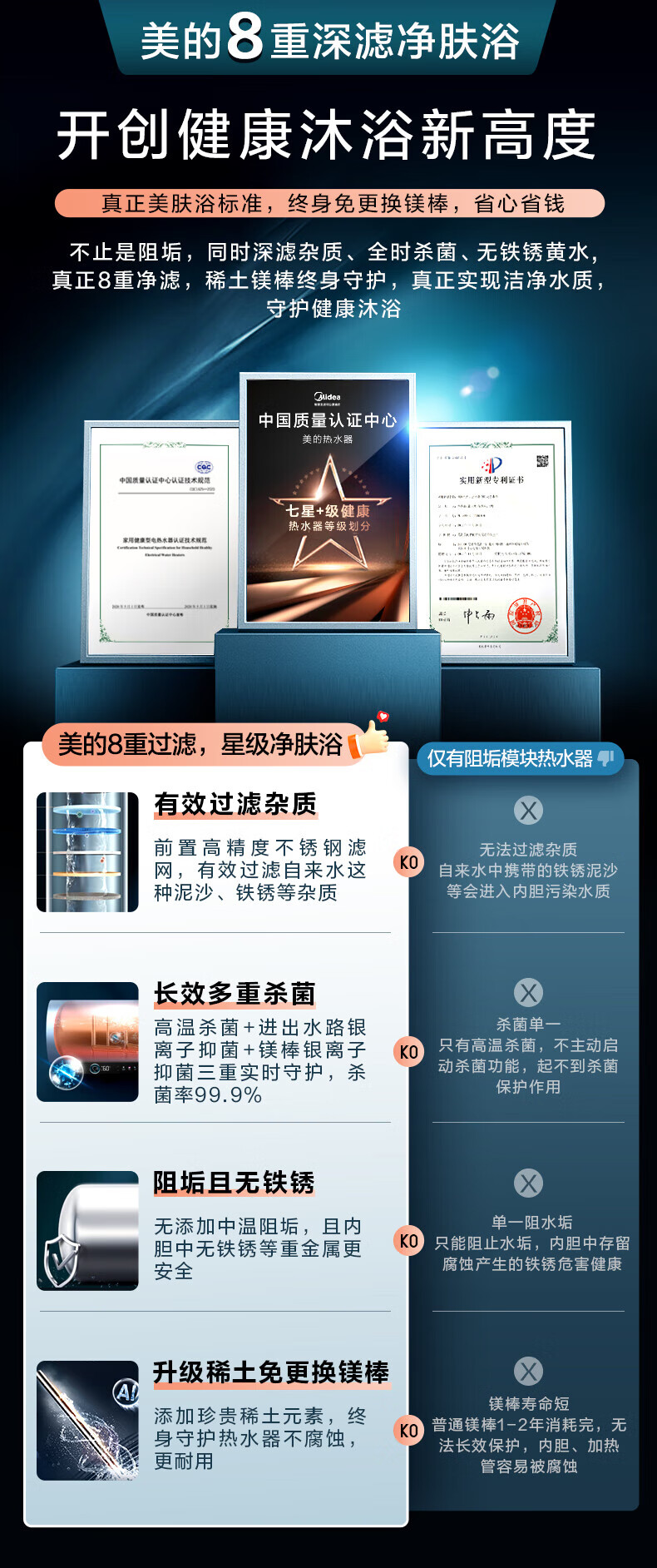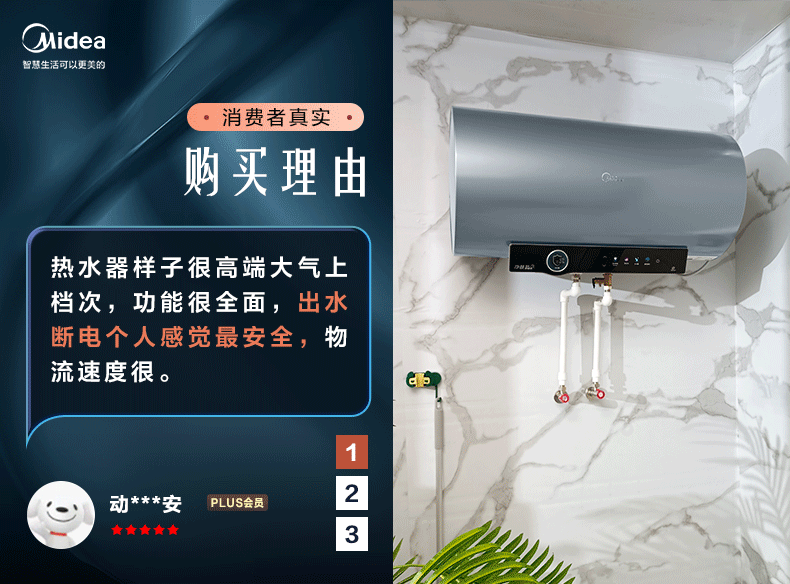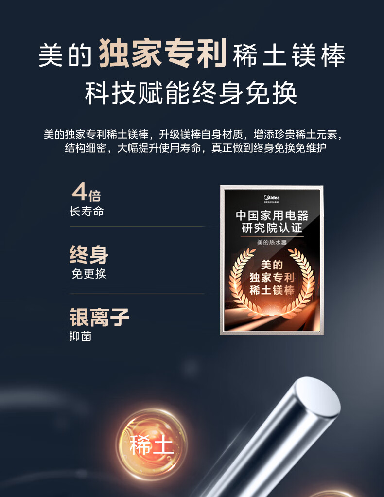 美的(Midea)电热水器60升3300W变频速热一级能效美肤洗镁棒免更换出水断电家用储水式京东小家 F6032-JA7(HE)