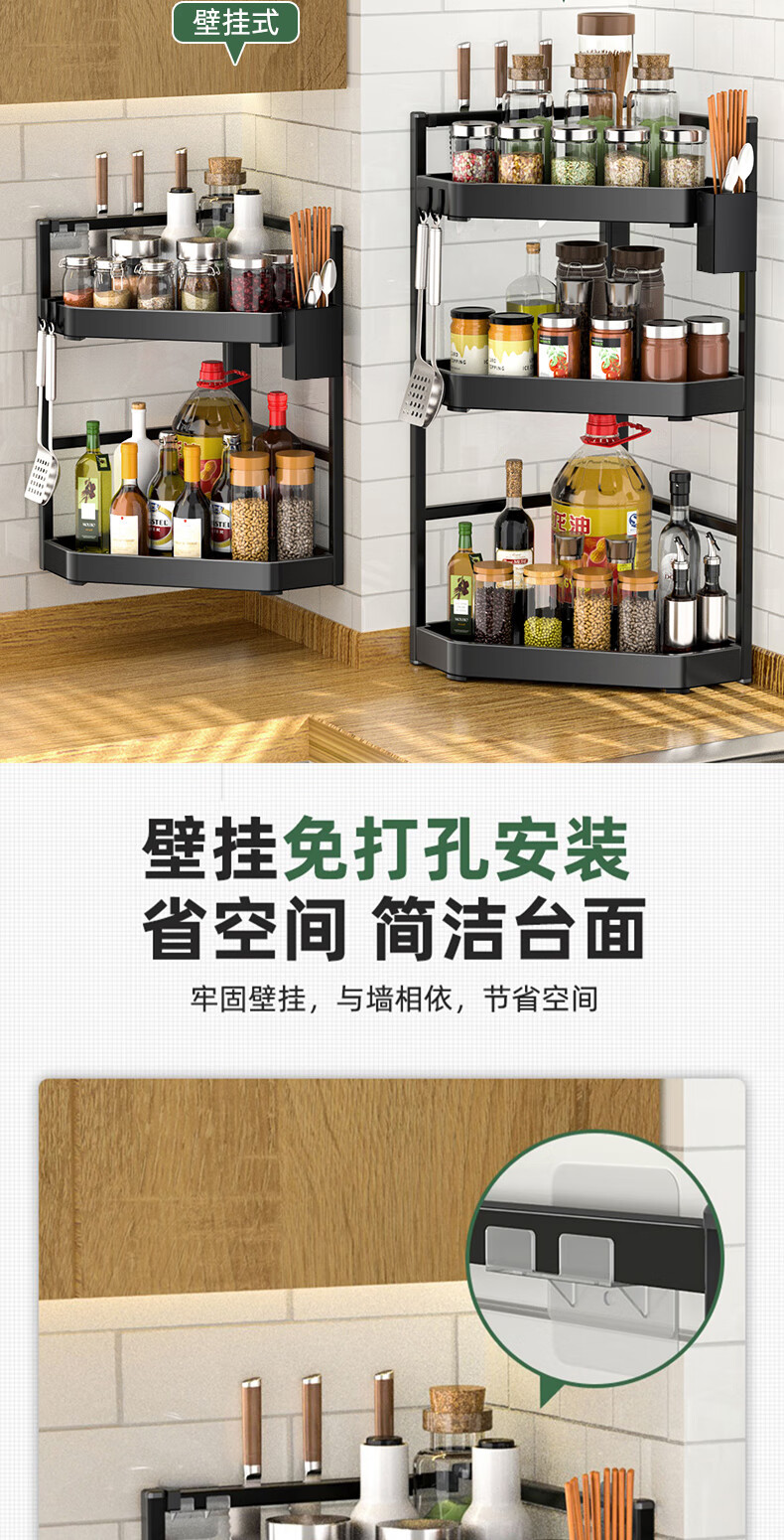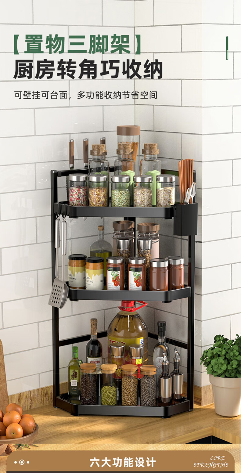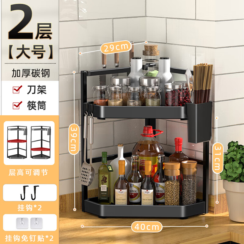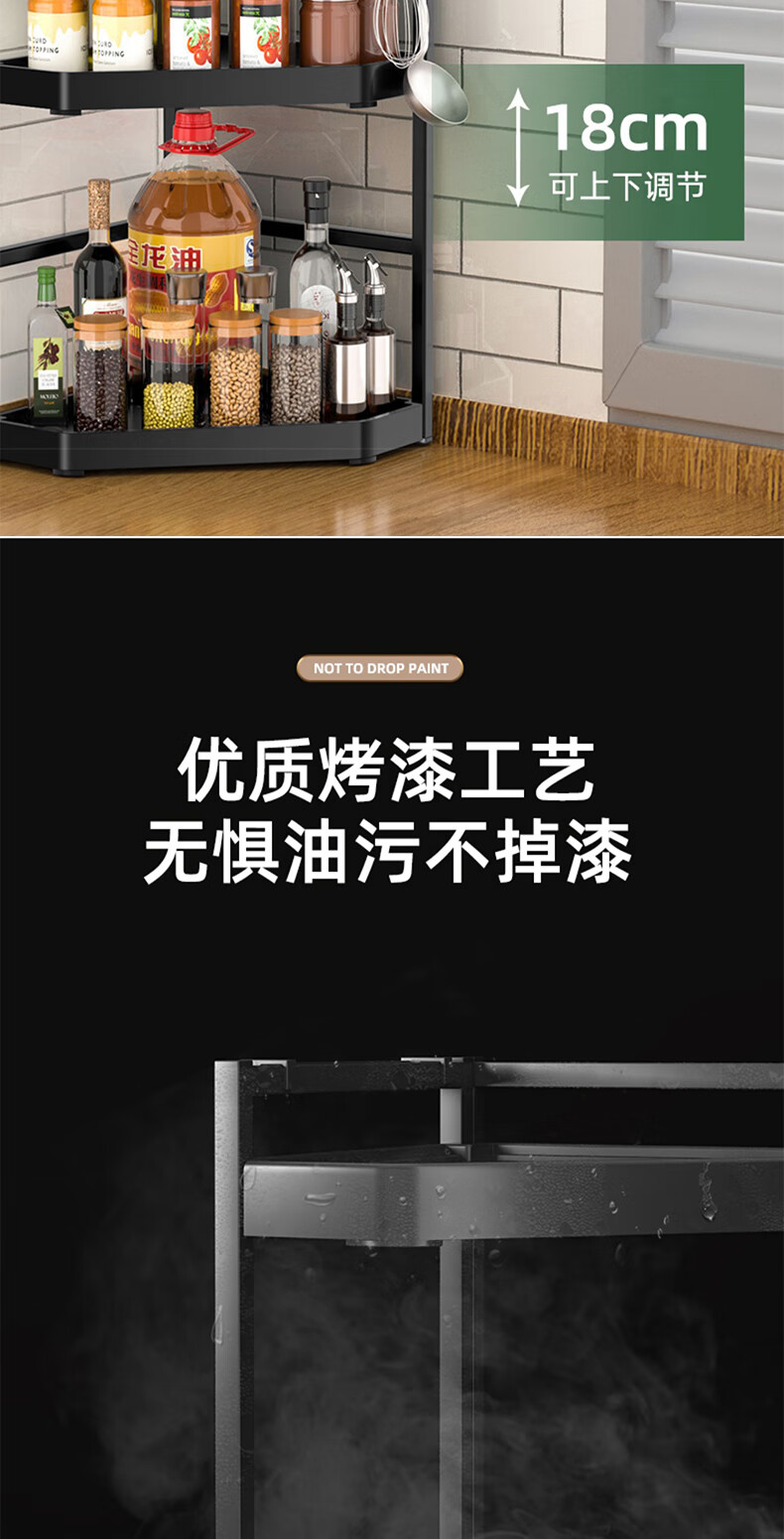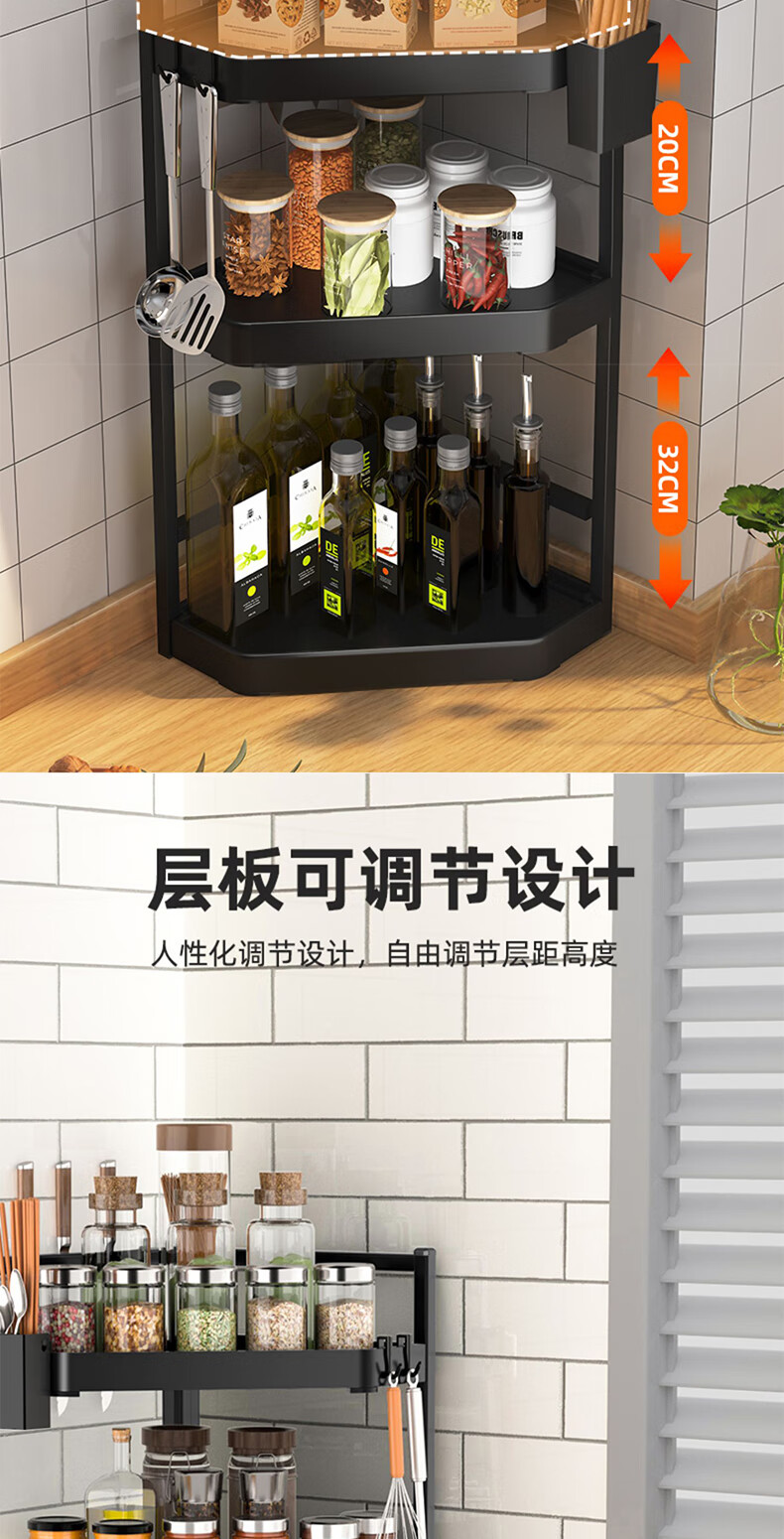 锦绣百年厨房置物架调料三角架可调节转角台面墙角调味品收纳架双层大号