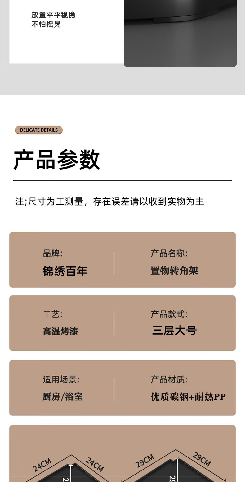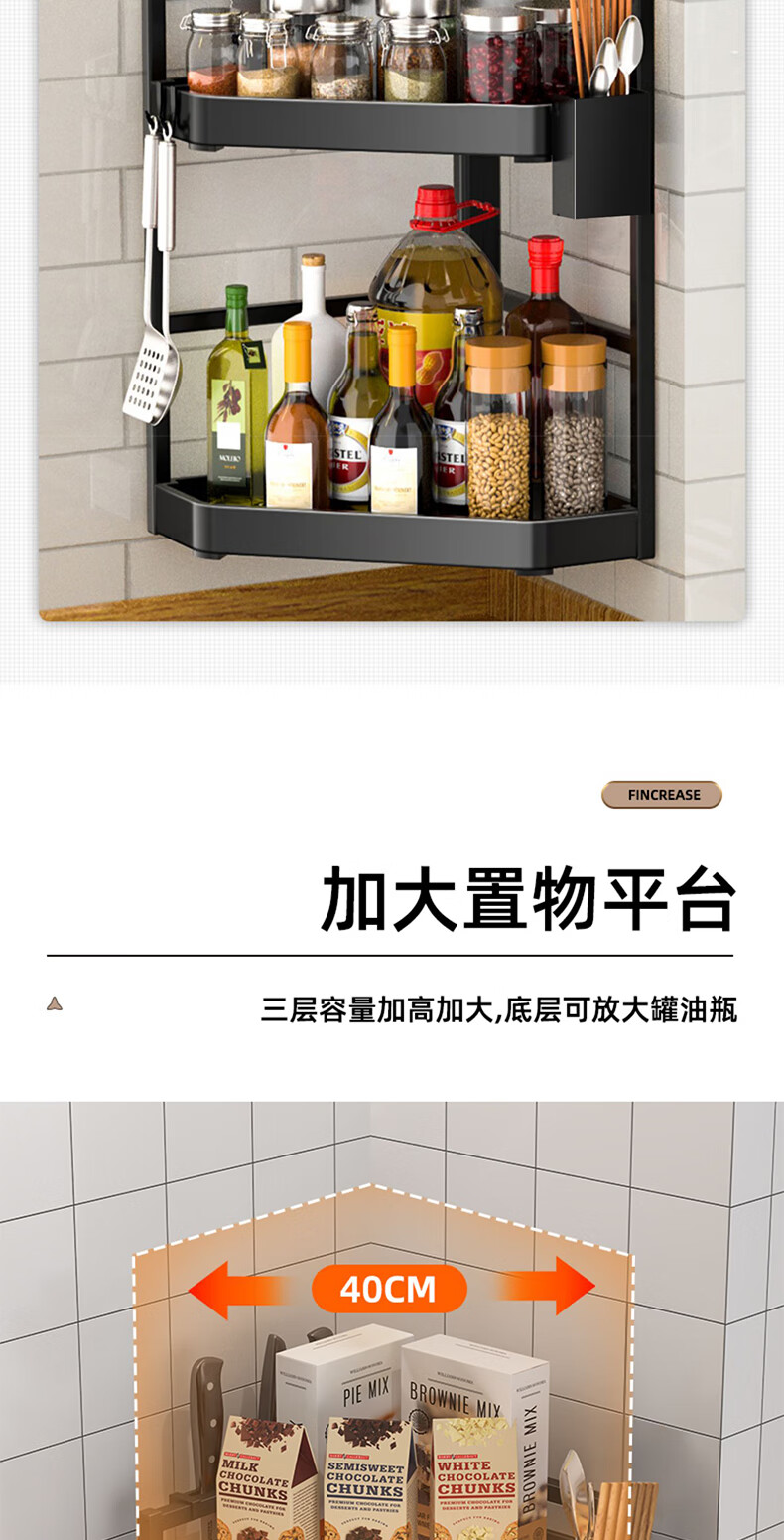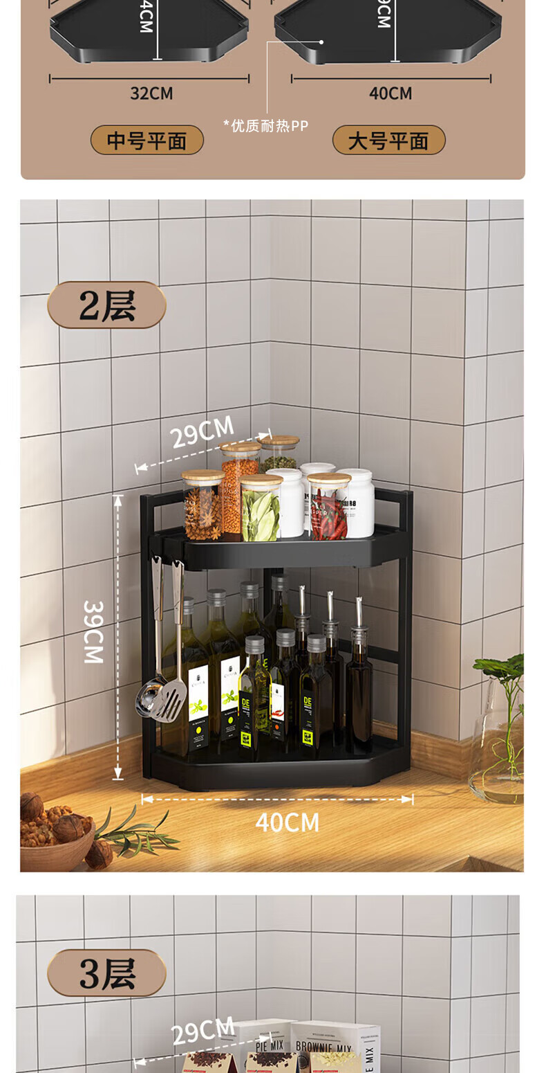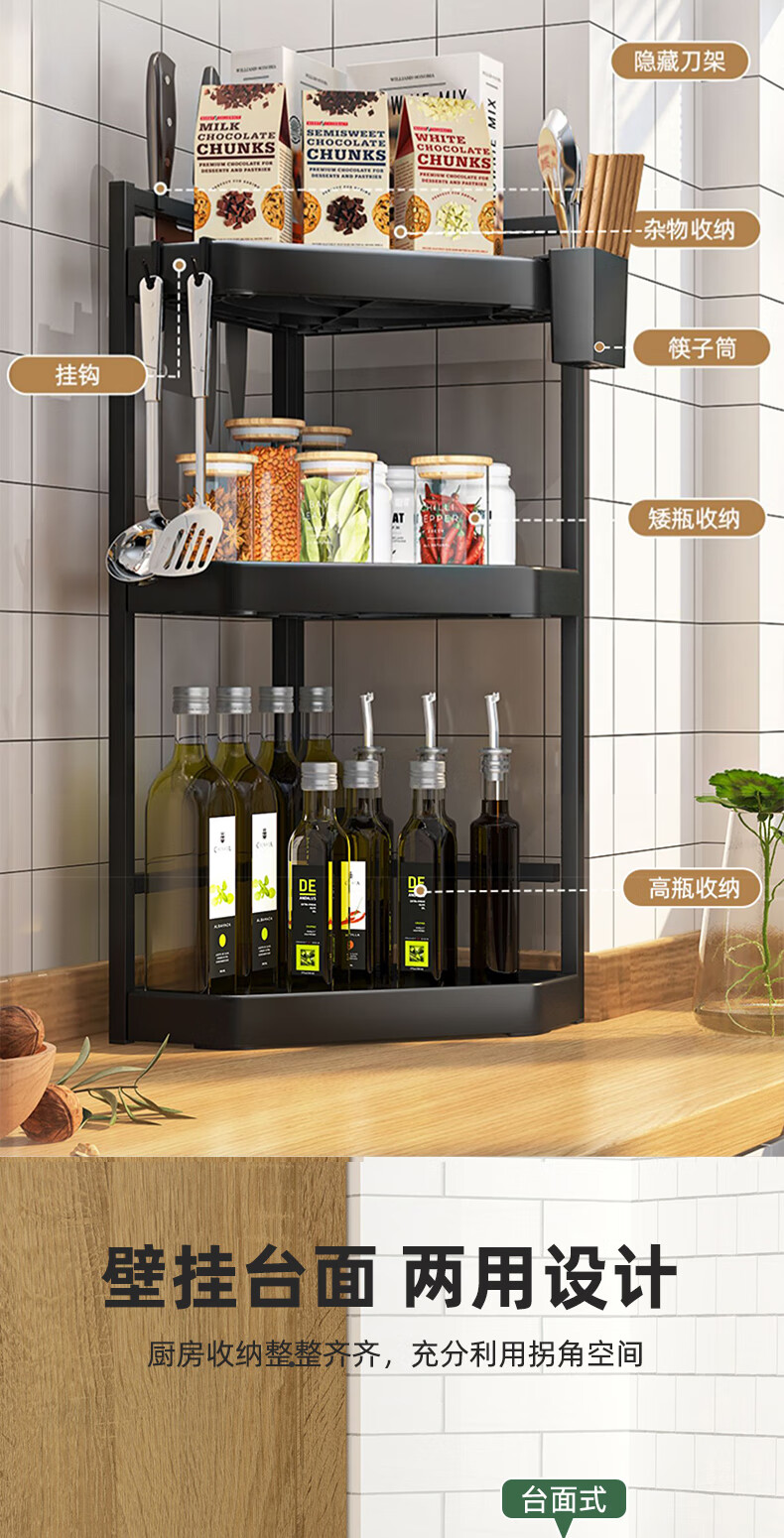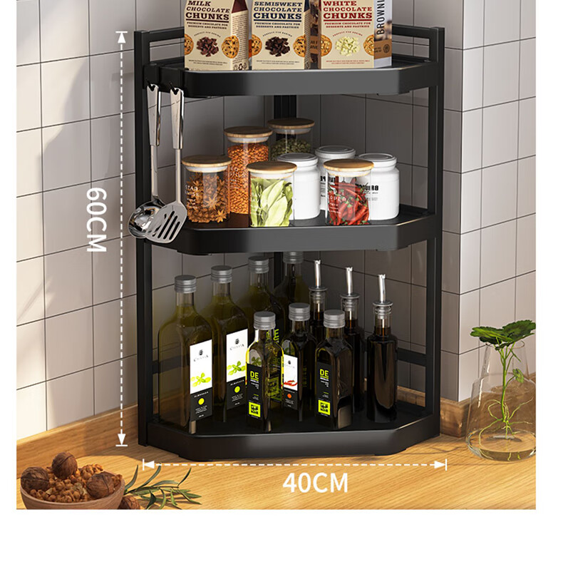 锦绣百年厨房置物架调料三角架可调节转角台面墙角调味品收纳架双层大号