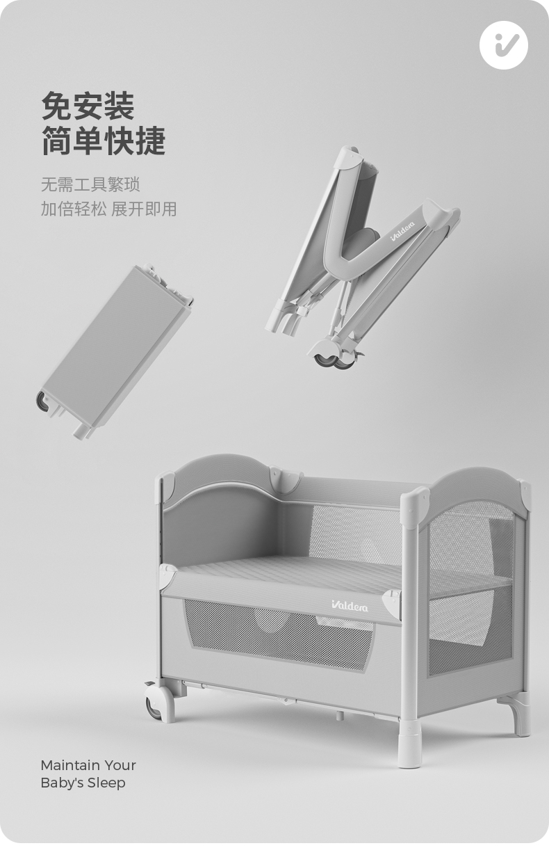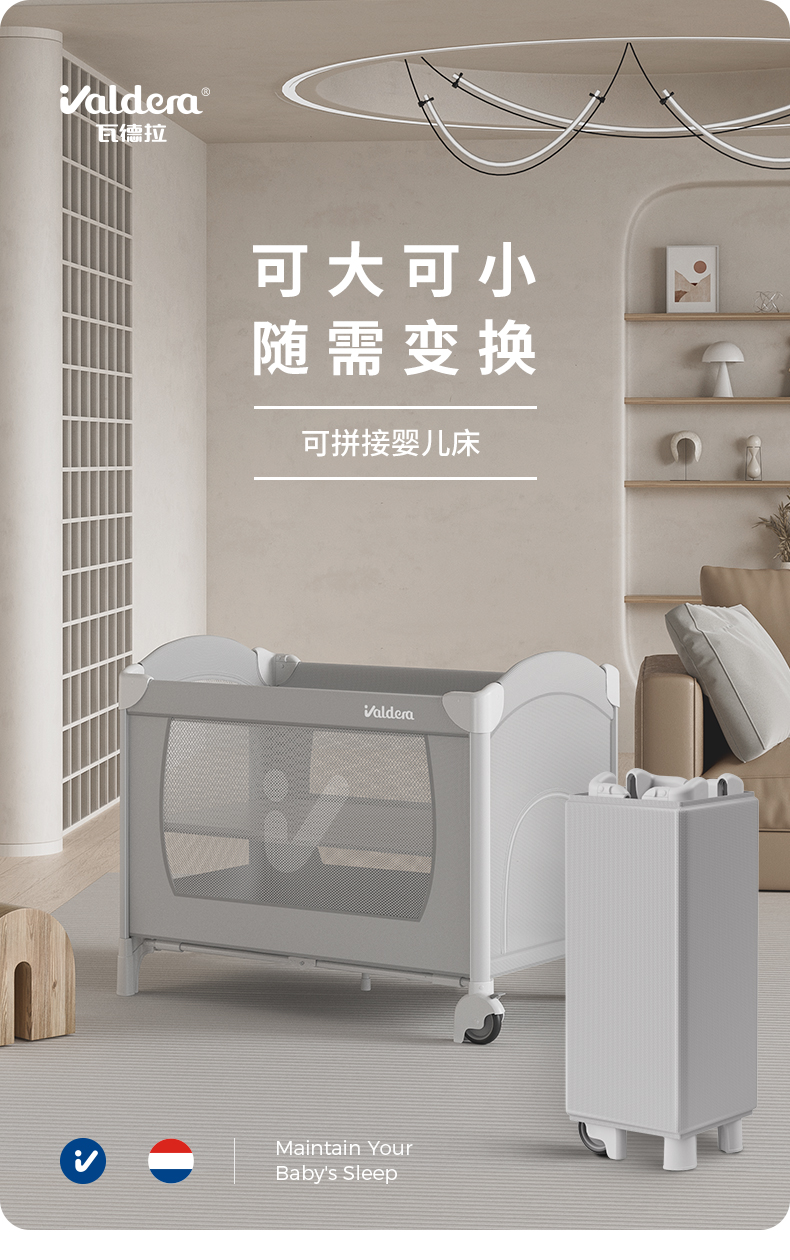 VALDERA婴儿床拼接大床新生儿多功能便携式可折叠宝宝床9030标准款