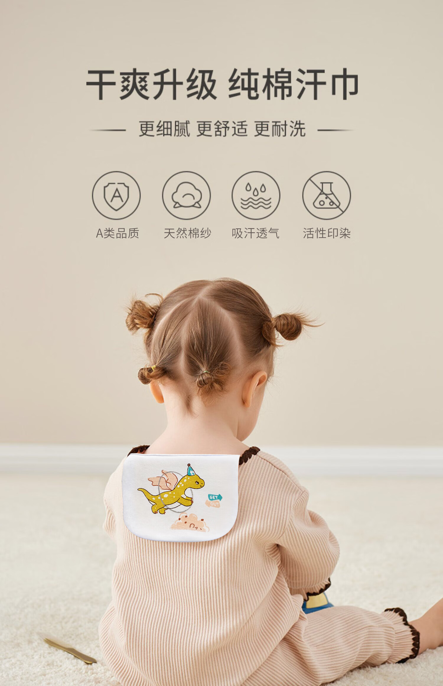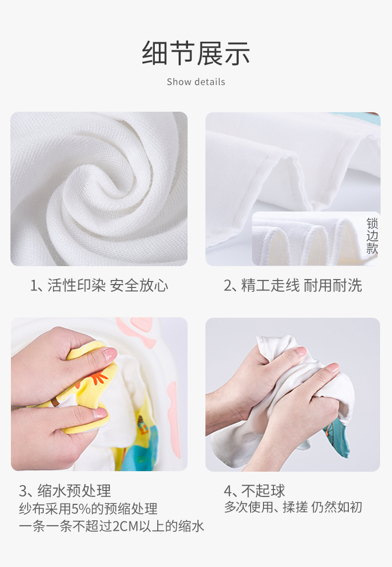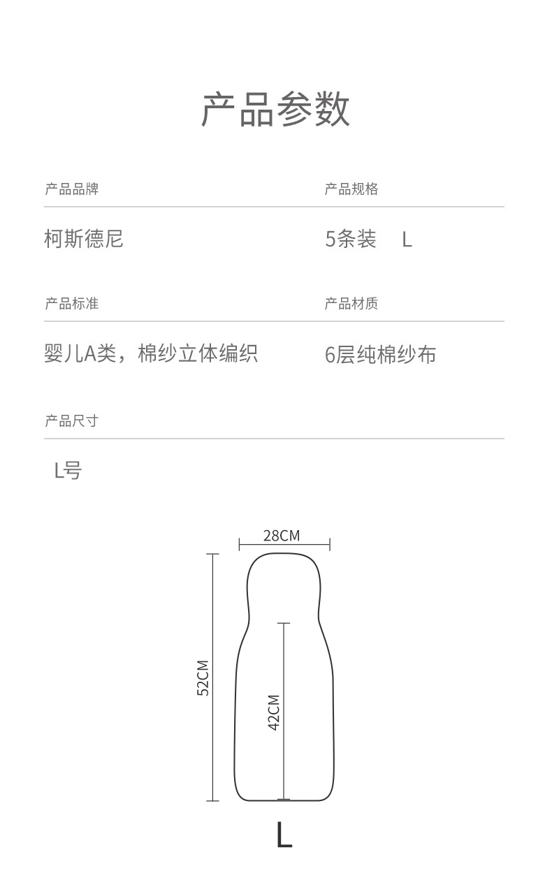 柯斯德尼(kidsneed)婴儿吸汗巾A类纯棉儿童隔汗巾幼儿园6层纱布垫背巾大号5条装