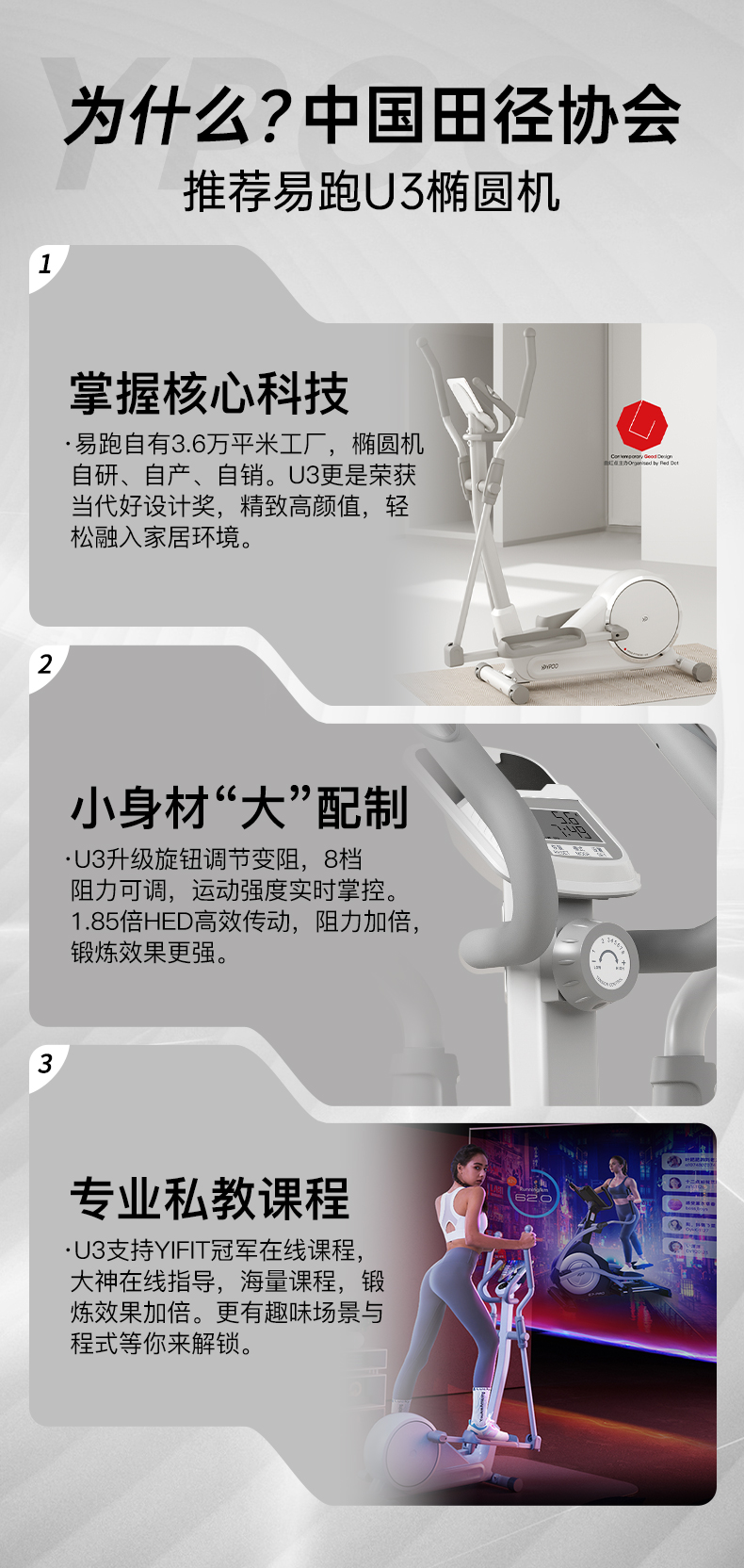 易跑【中国田协官方供应商】椭圆机家用太空漫步智能椭圆仪健身器材U3