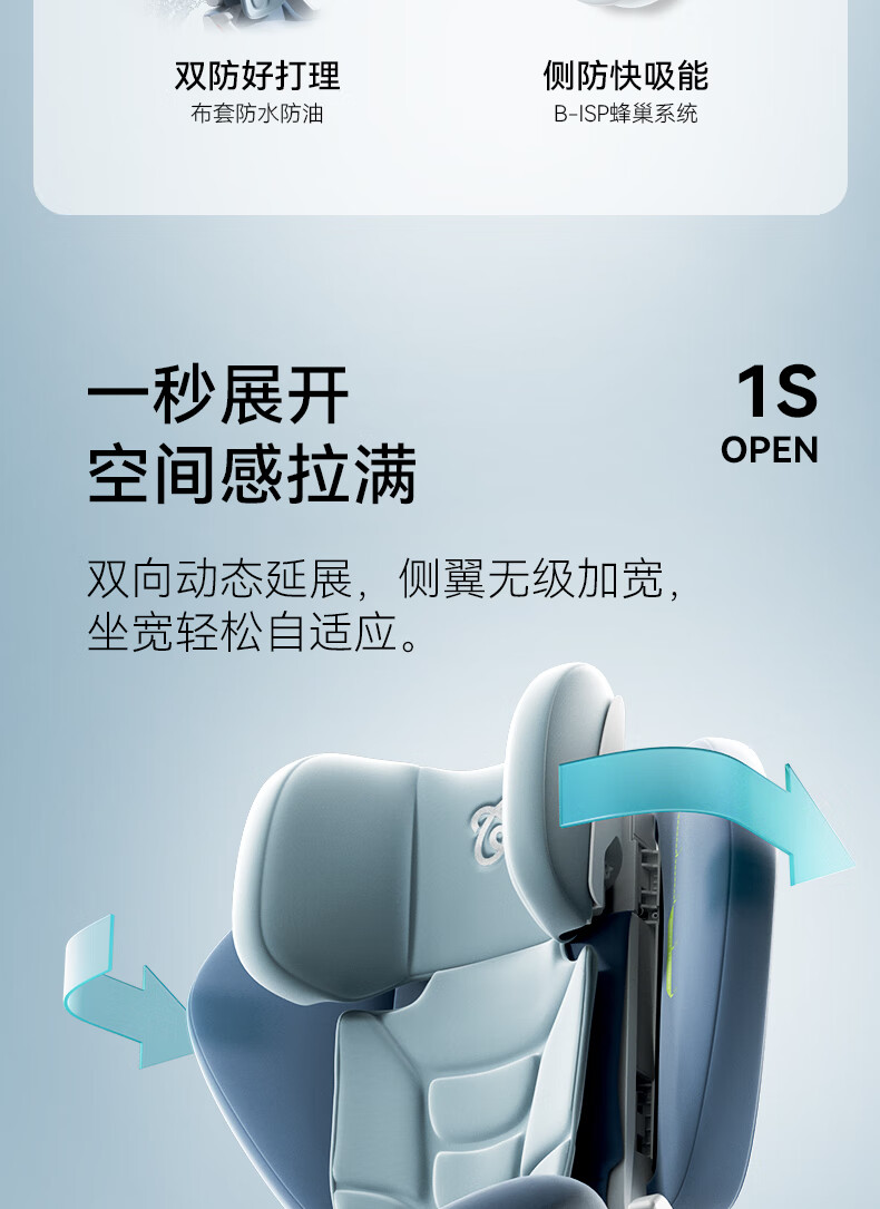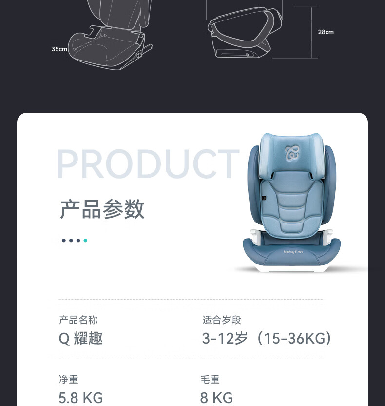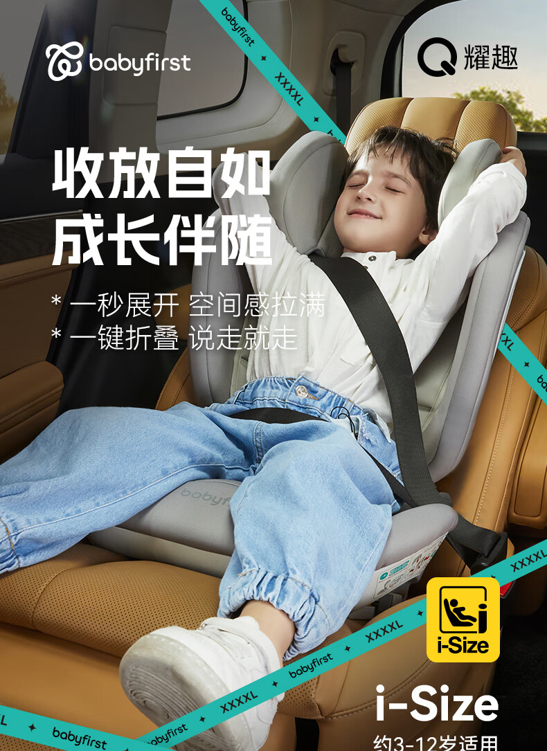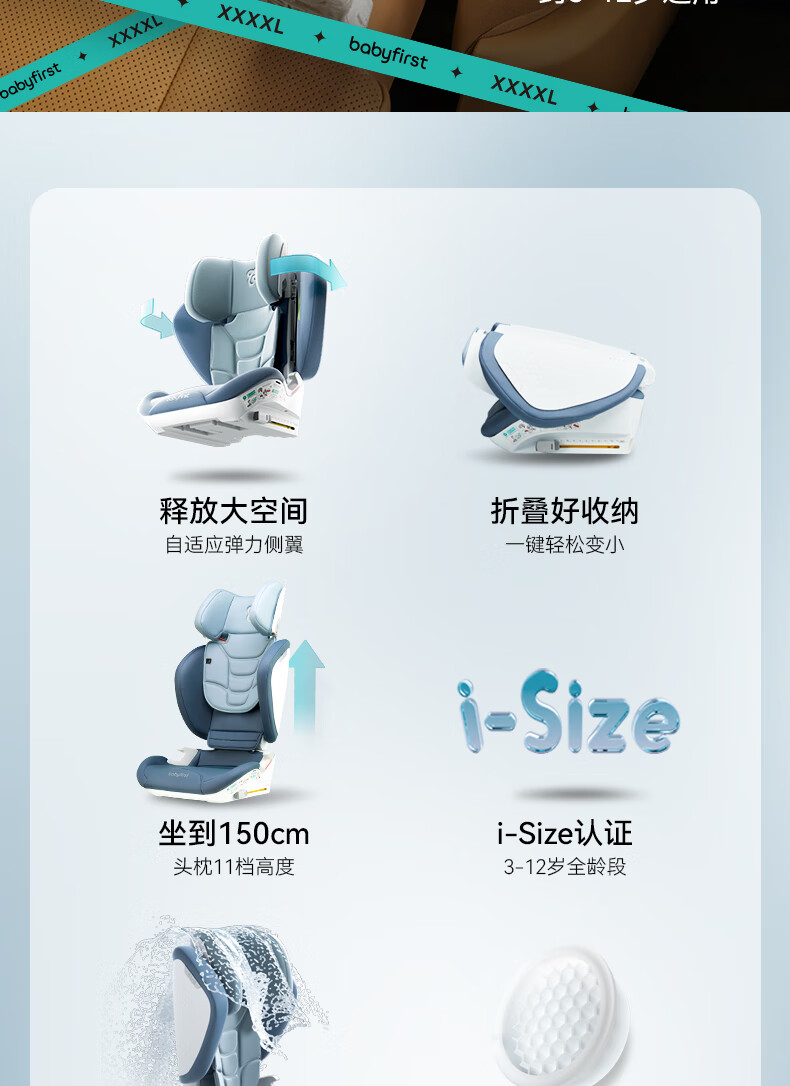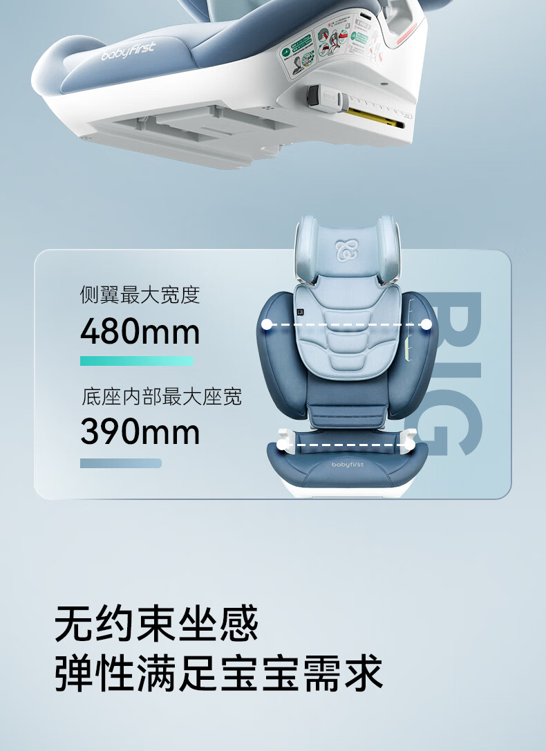 宝贝第一(Babyfirst)耀趣大儿童安全座椅汽车载3岁以上-12岁i-Size增高垫 柔雾蓝R943A