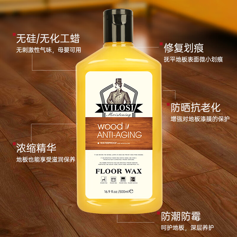 vilosi英国 木地板蜡实木复合地板清洁保养护理精油蜡家用防滑无脚印红木家具打蜡抛光 地板蜡500ml