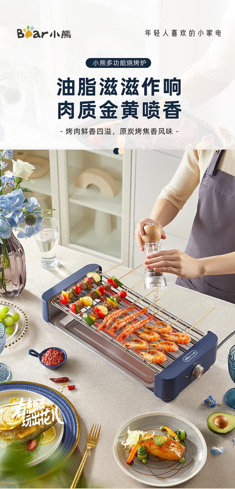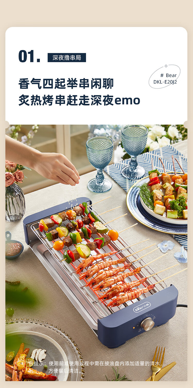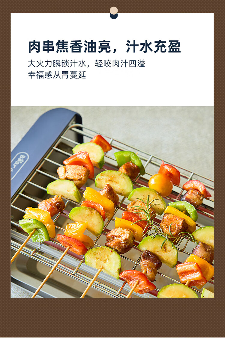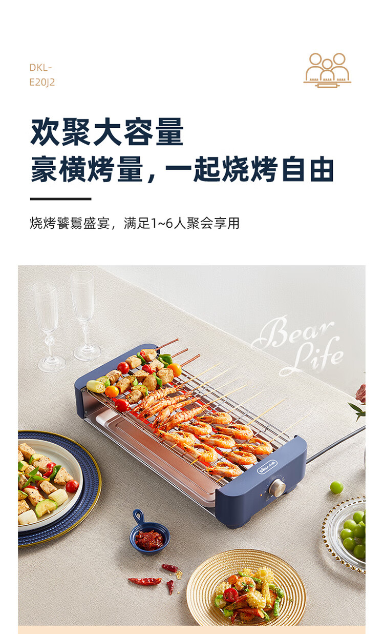 小熊(Bear)电烤炉 电烧烤炉 烧烤架 单层大容量家用无烟大功率不粘烤串烧烤炉DKL-E20J2