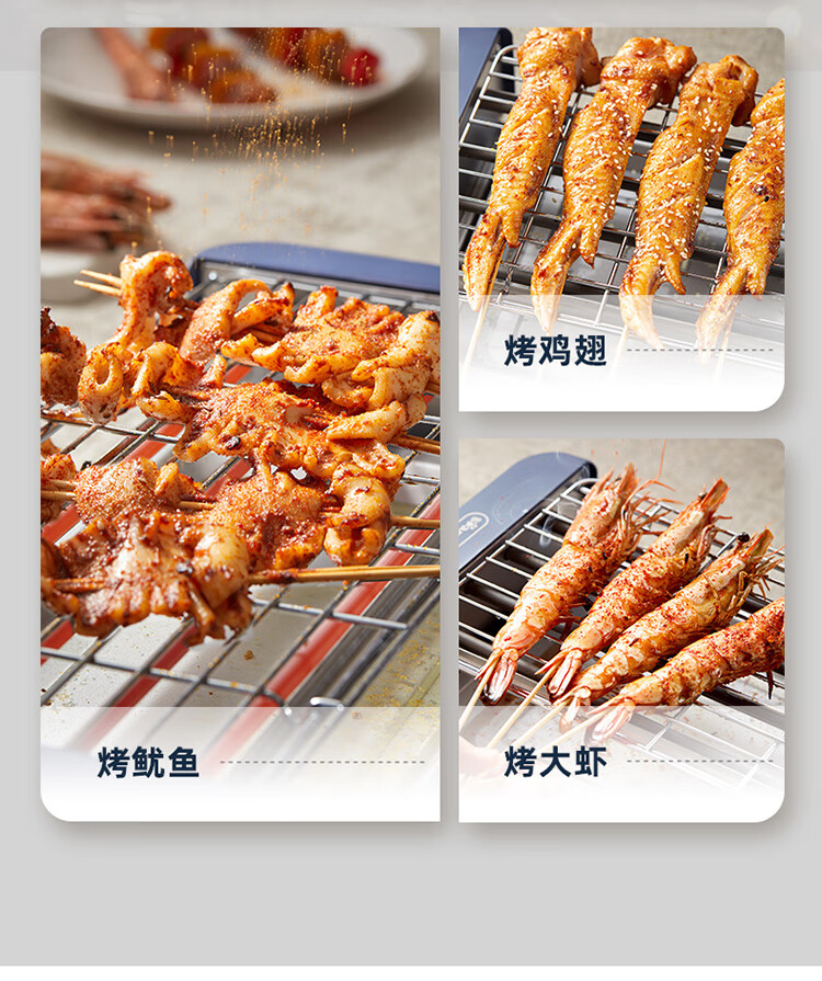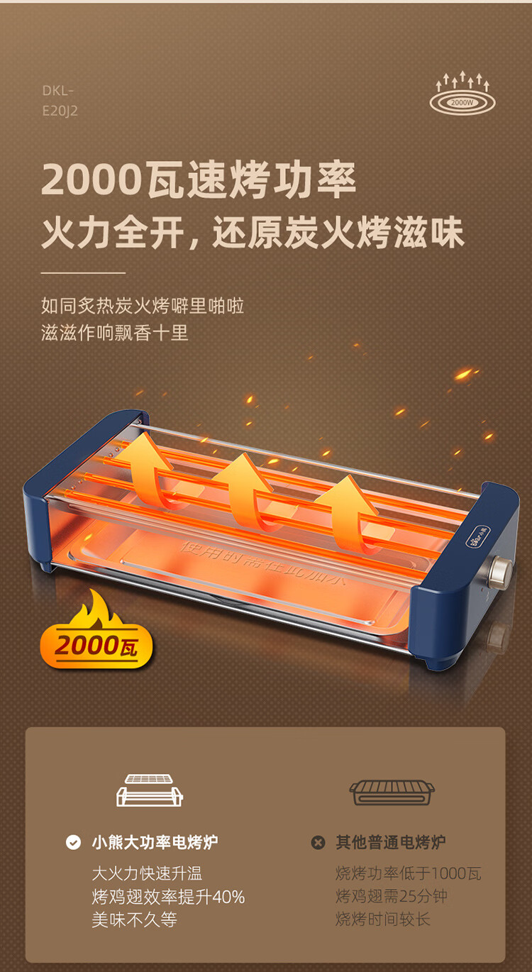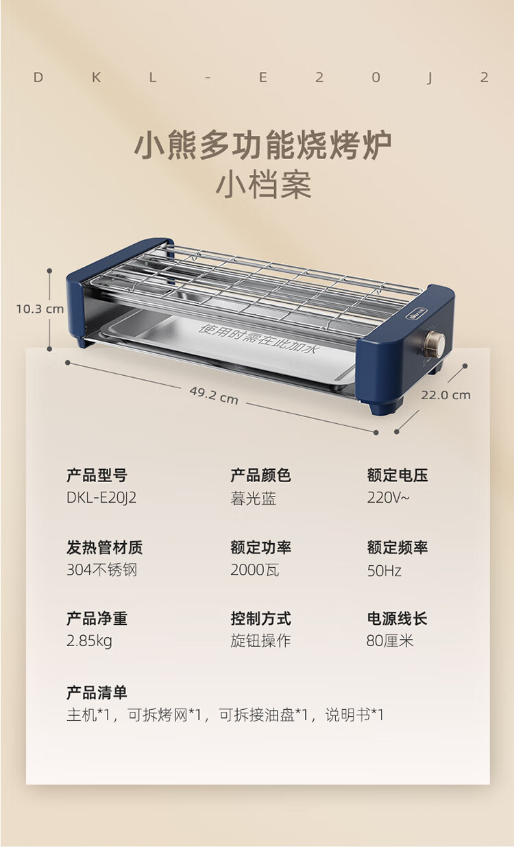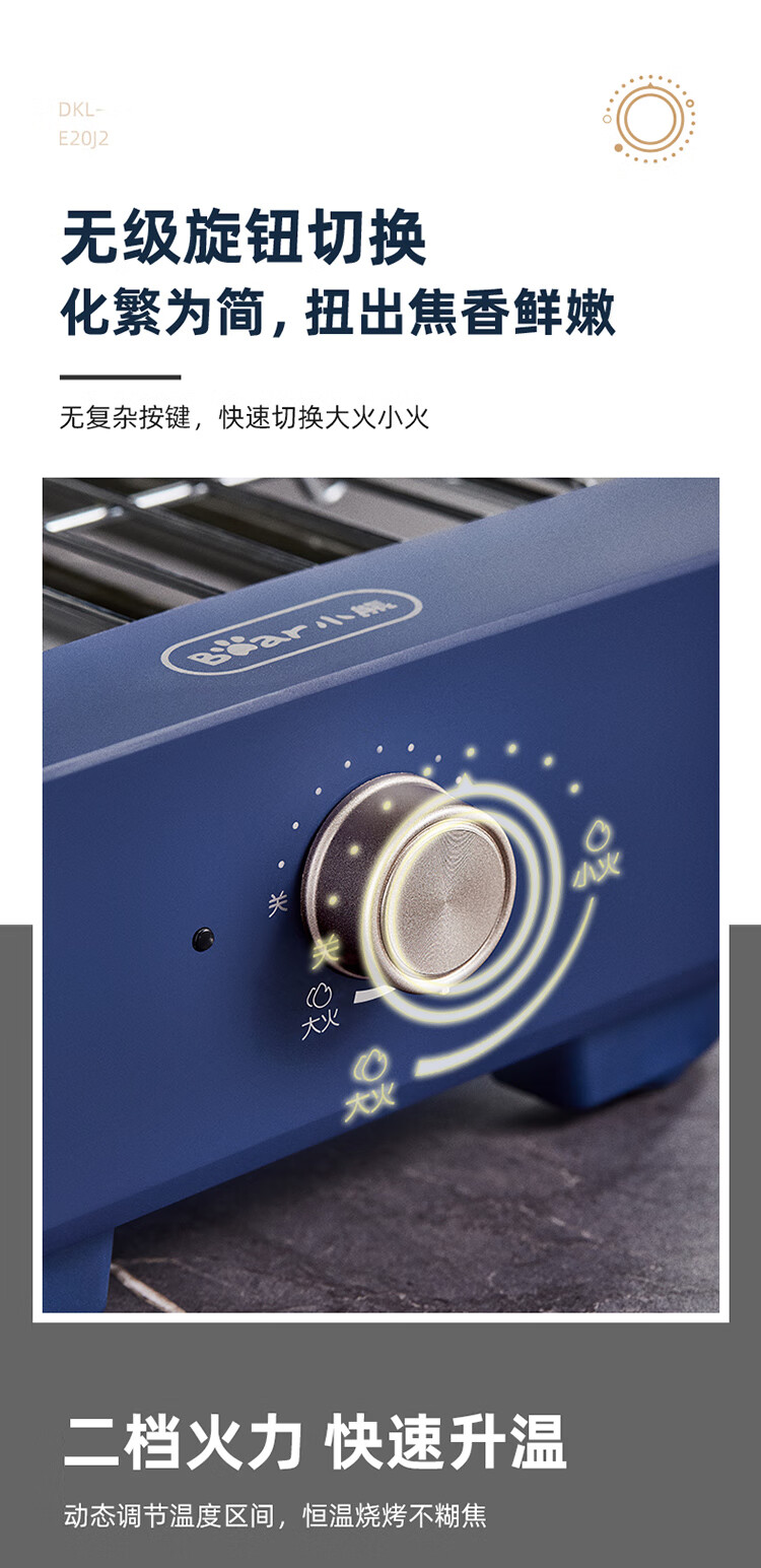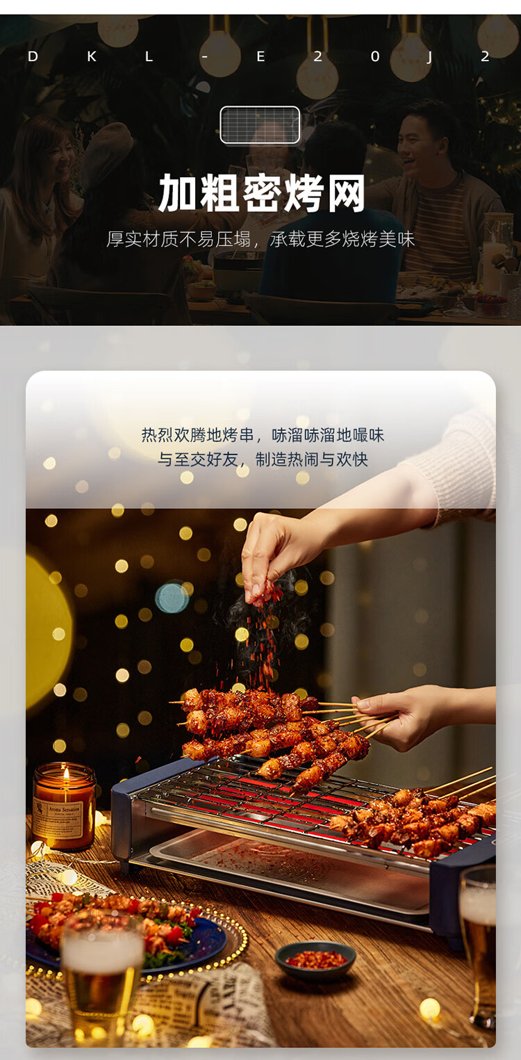 小熊(Bear)电烤炉 电烧烤炉 烧烤架 单层大容量家用无烟大功率不粘烤串烧烤炉DKL-E20J2