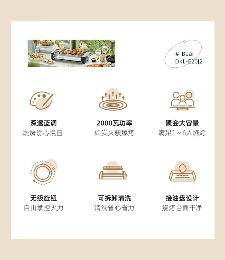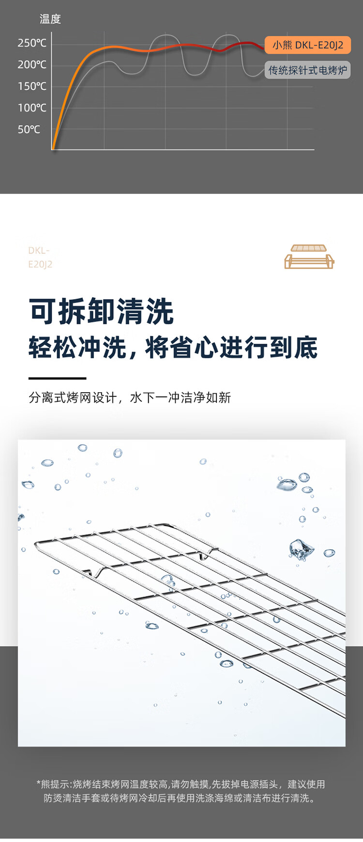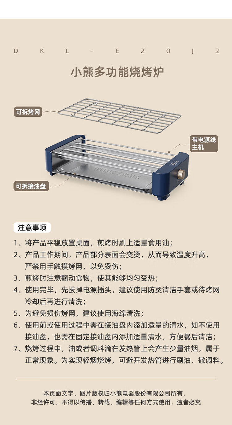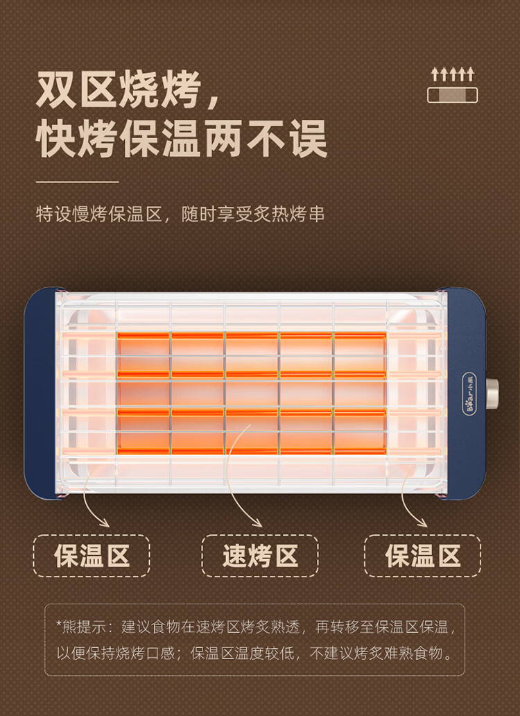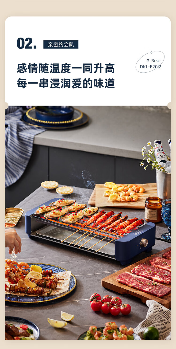 小熊(Bear)电烤炉 电烧烤炉 烧烤架 单层大容量家用无烟大功率不粘烤串烧烤炉DKL-E20J2