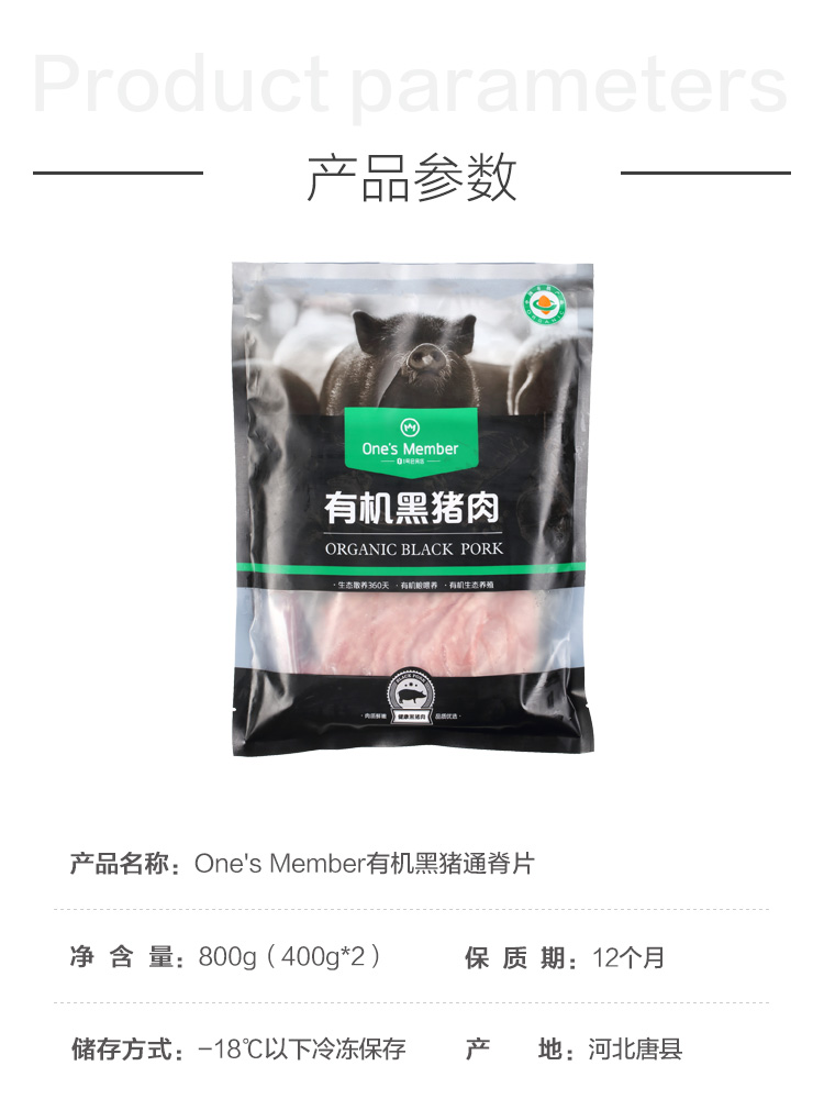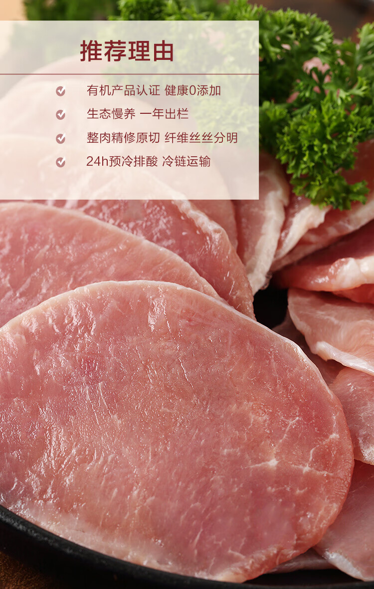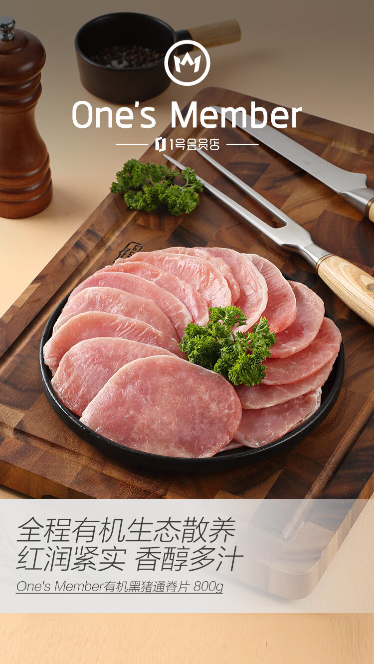 1号会员店有机黑猪里脊片 猪柳 烧烤烤肉食材 猪肉生鲜 800g