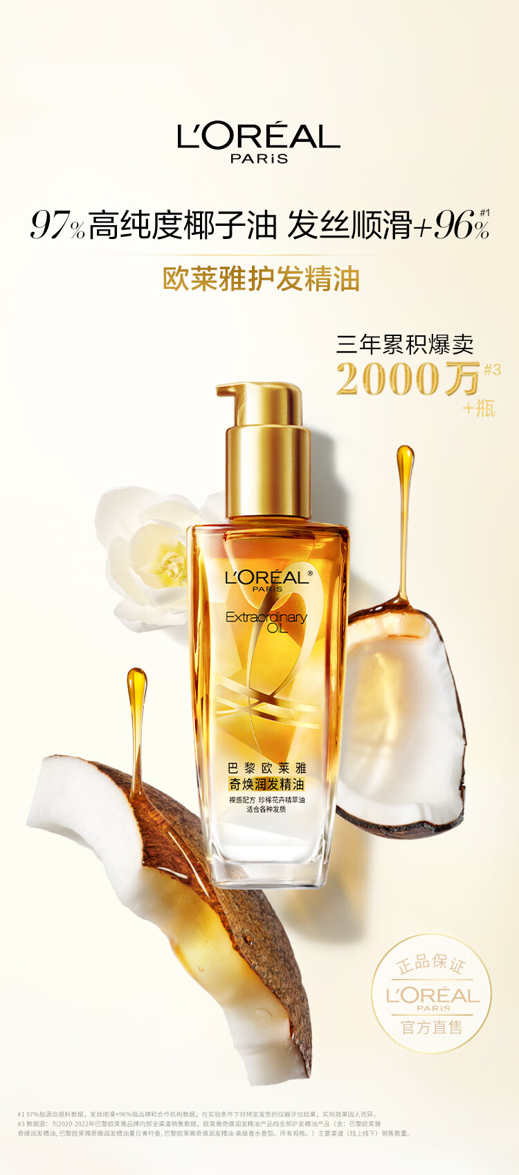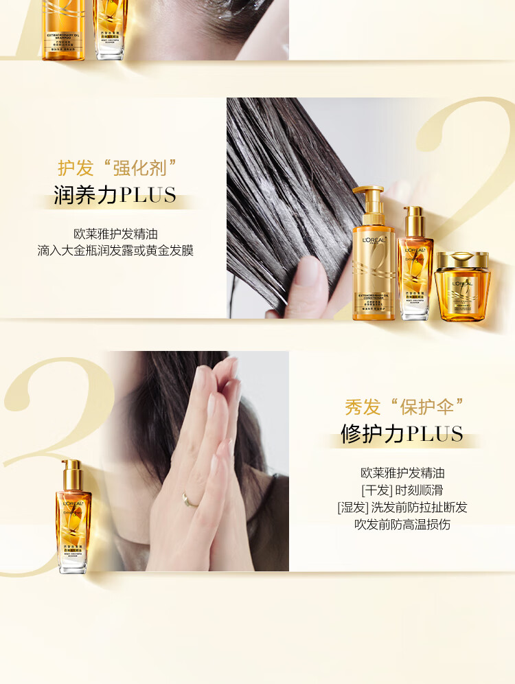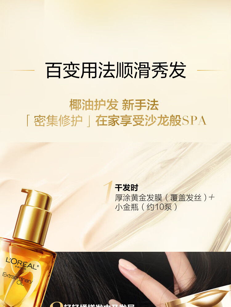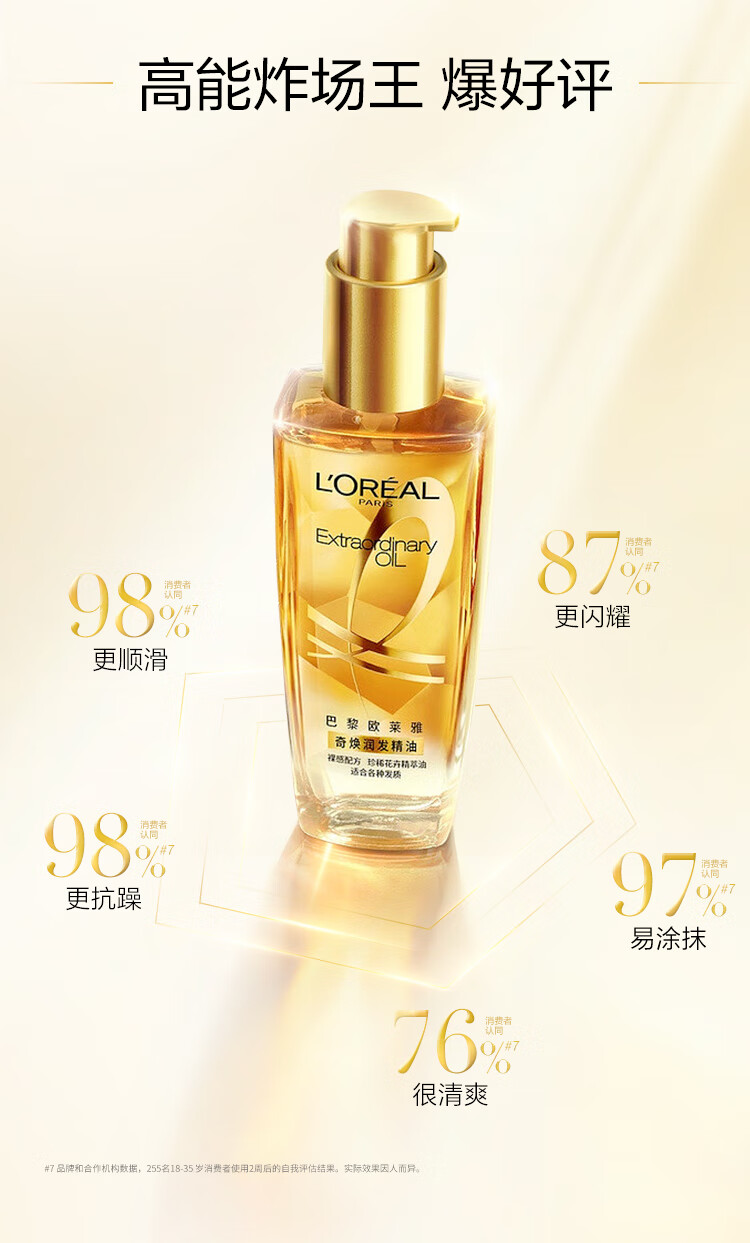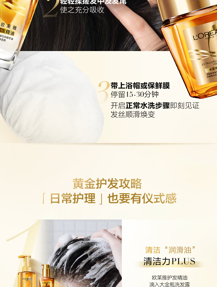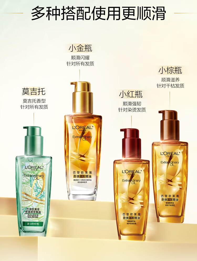 欧莱雅奇焕润发护发精油100ml(小金瓶 针对所有发质 免洗 滋养 防毛躁)