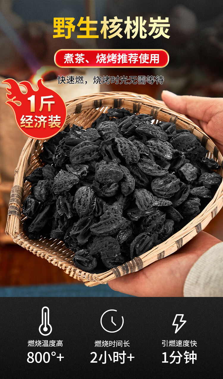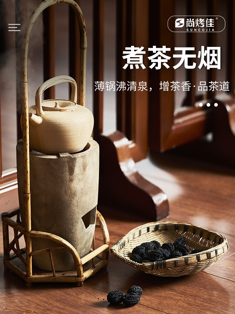 尚烤佳(Suncojia)煮茶炭 核桃炭 果木炭 龙眼炭 无烟烧烤碳 茶炉专用炭 经济装1斤