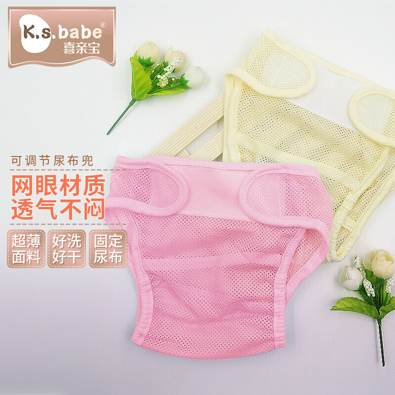 喜亲宝 宝宝尿布裤新生儿尿布兜尿布带婴儿网眼透气裤用品2条装(粉色+黄色)L码【建议18斤-24斤】