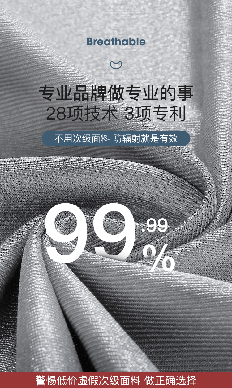 婧麒(JOYNCLEON)防辐射服孕妇装女内裤防辐射衣服上班隐形内穿 灰白色银纤维托腹裤 XXL码 jy0950