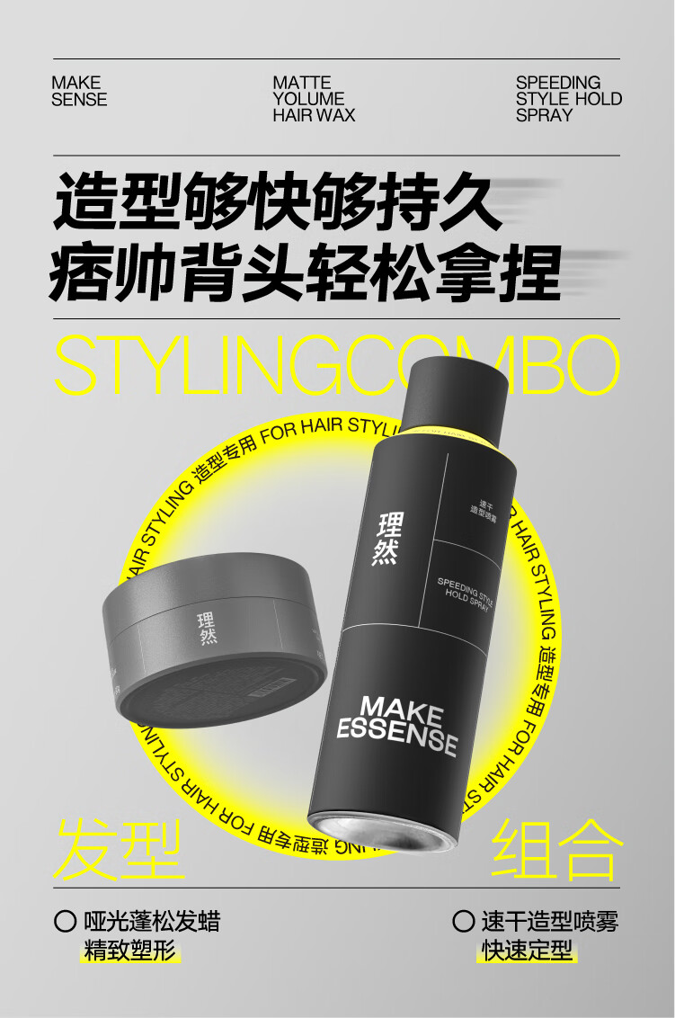 理然发胶定型喷雾发蜡速干定型持久塑型哑光自然造型套装250ml+80g