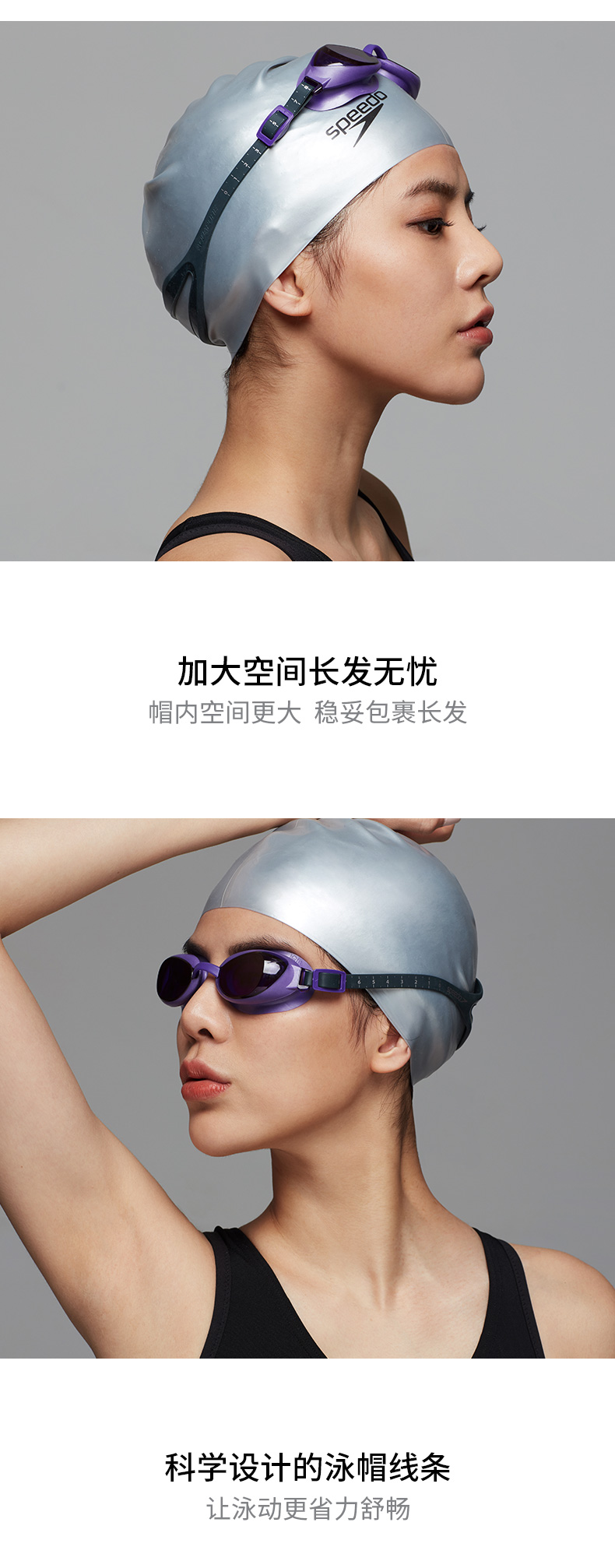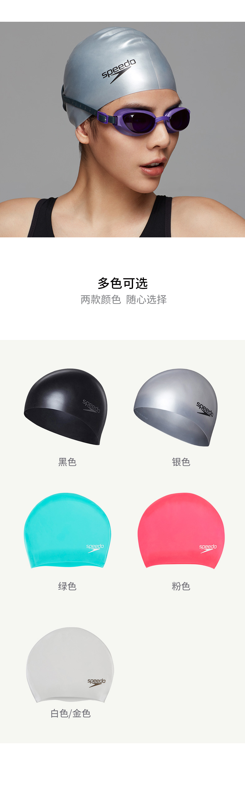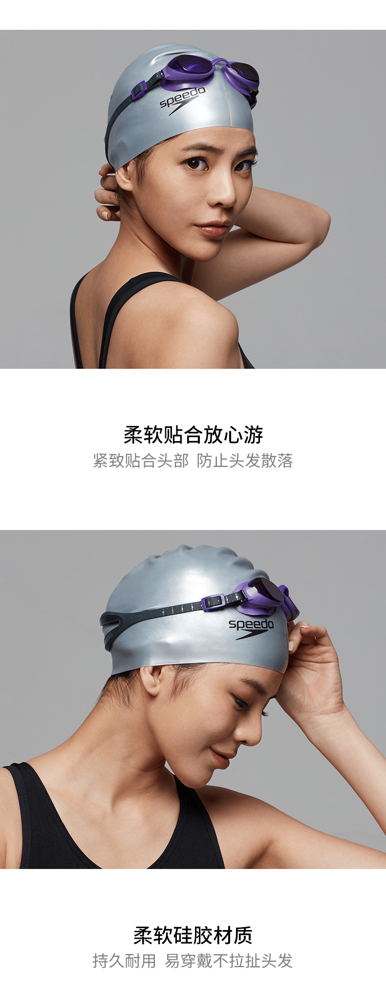 速比涛(Speedo)加大游泳帽长发防水护耳男士女士成人硅胶泳帽 8061681731 石灰