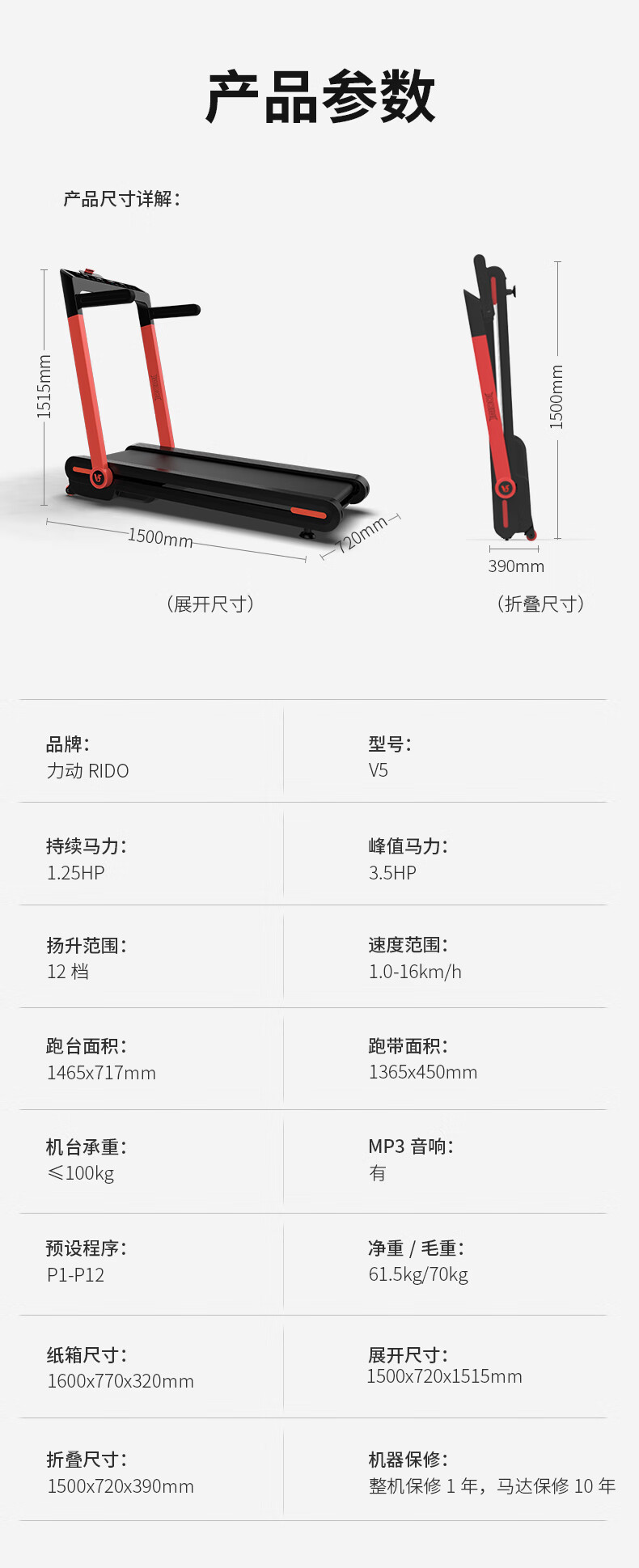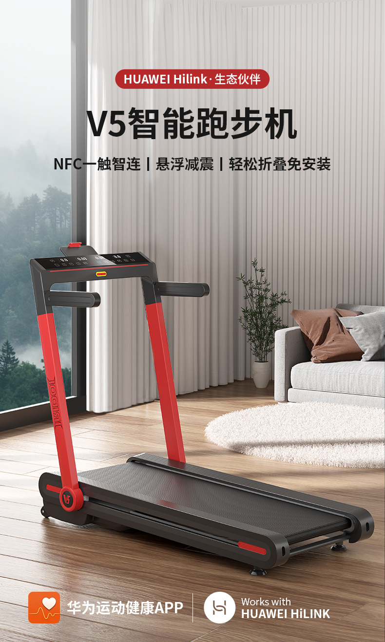 力动(RIDO)华为智选 智能跑步机家用减震走步机折叠小型轻音减肥健身器材V5