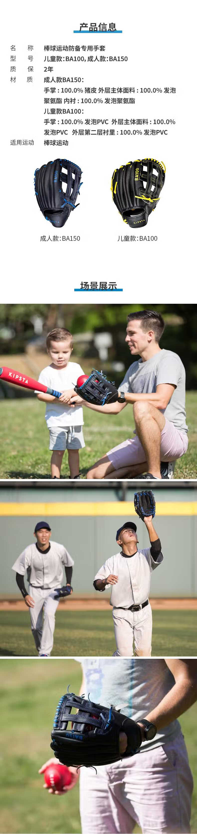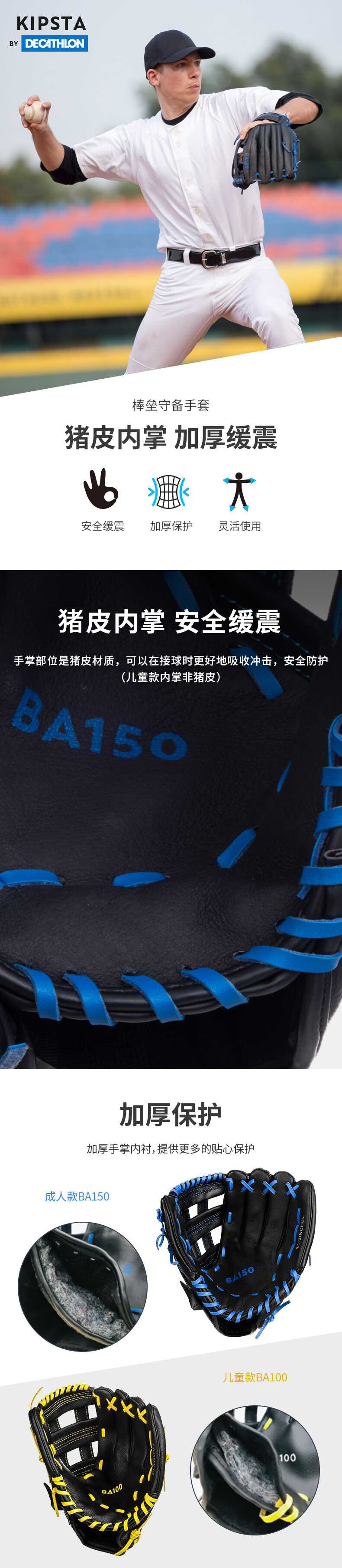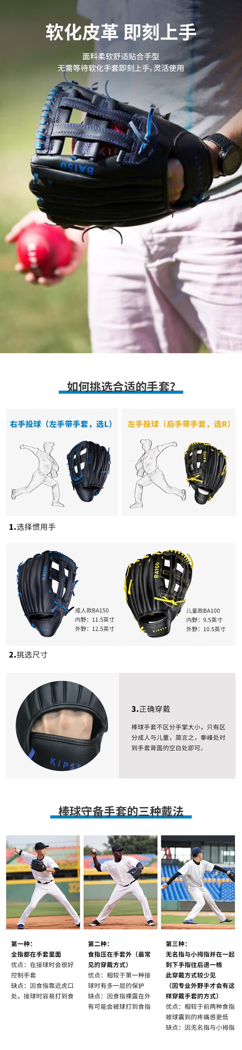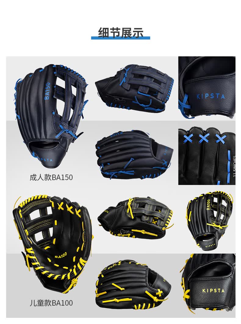 迪卡侬棒球成人牛皮野垒球手套Base-BA150大师黑(右手11.5英 2461524