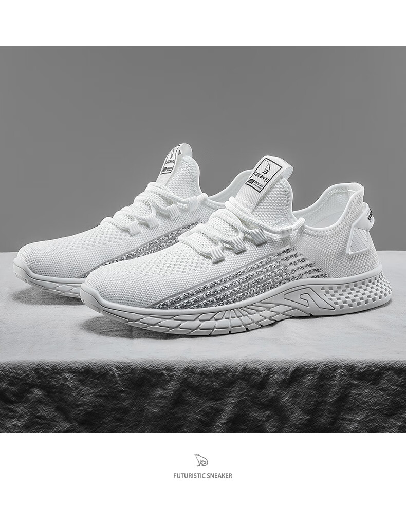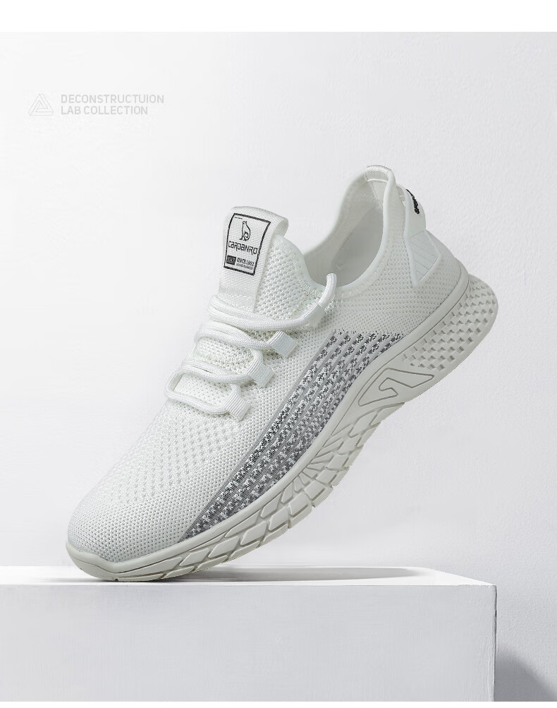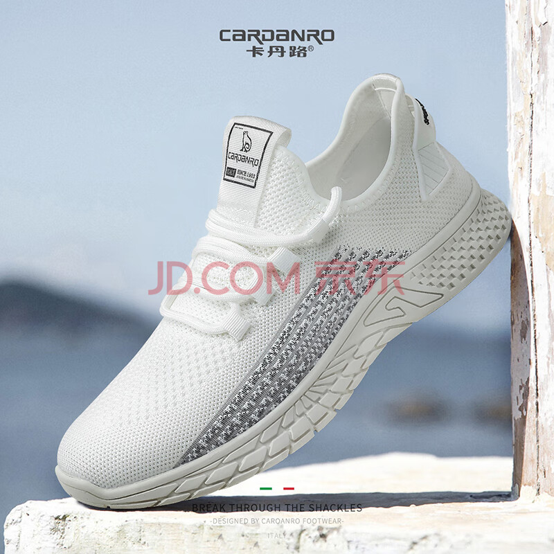 卡丹路 CARDANRO 休闲鞋男士舒适透气网面飞织鞋子男户外穿轻质运动鞋男百搭潮流男鞋 KC22101552 白色 43