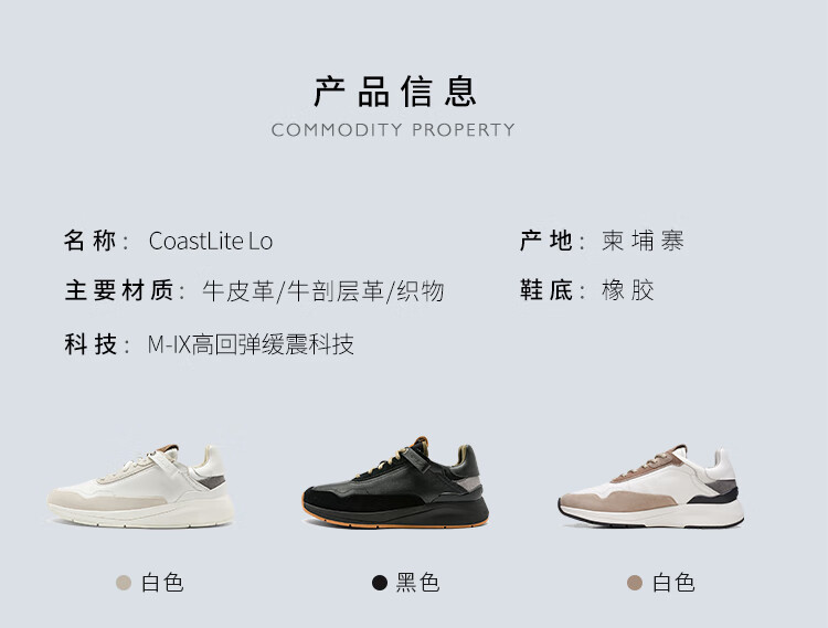 Clarks其乐男鞋科特轻量休闲跑鞋舒适缓震耐磨运动鞋 黑色 40