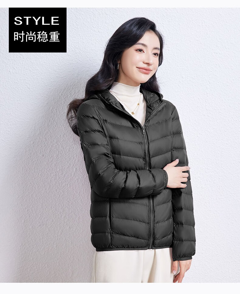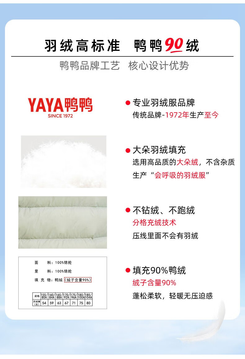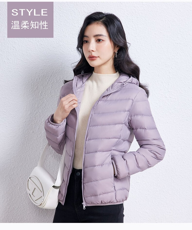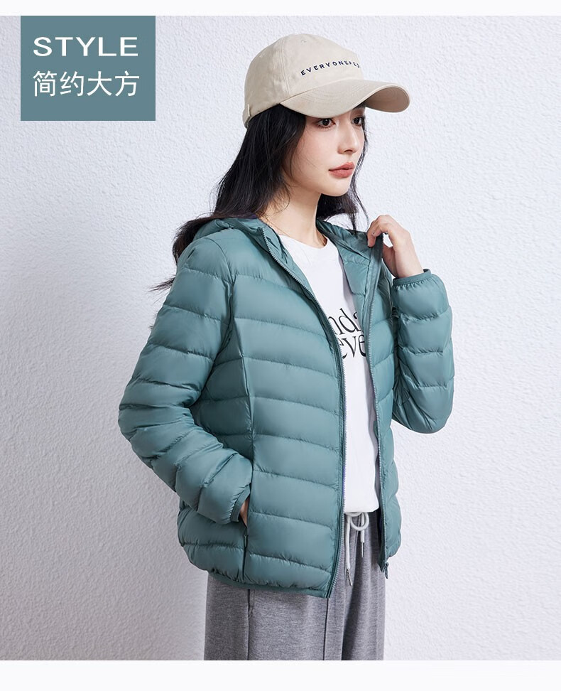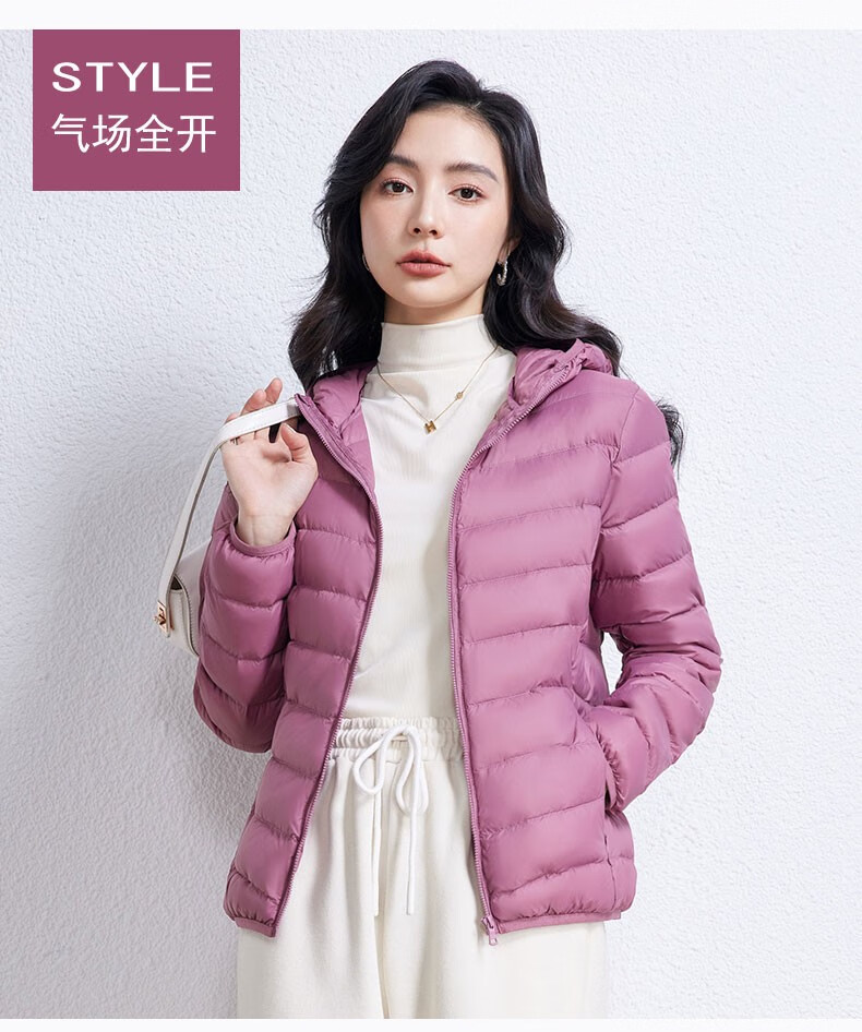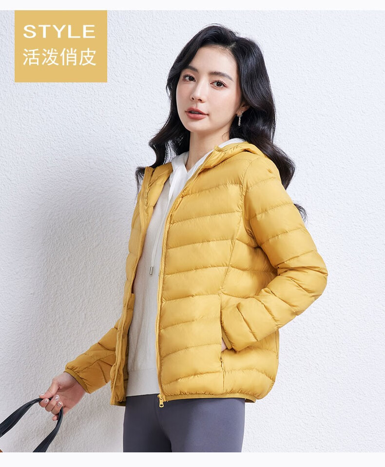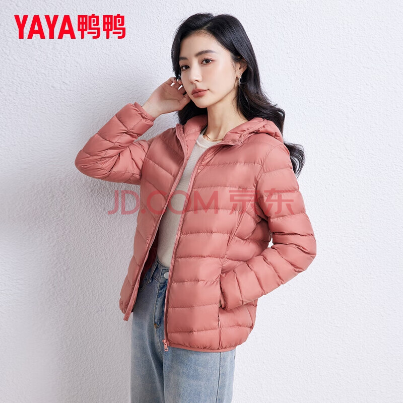 鸭鸭(YAYA)新国标轻薄款羽绒服女保暖时尚修身短款白鸭绒秋冬季连帽轻便外套