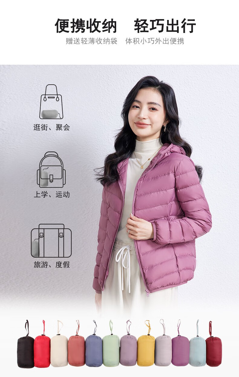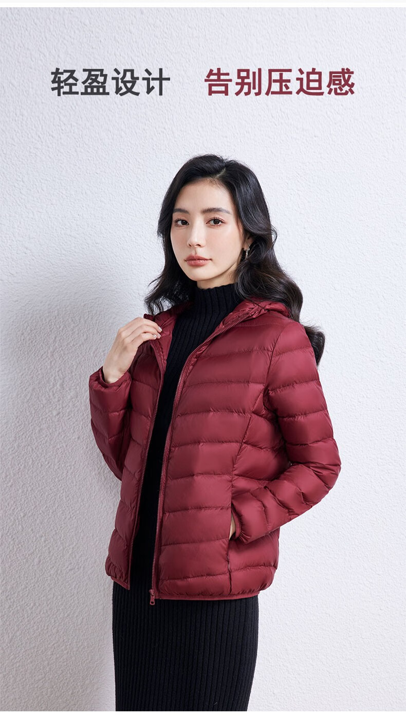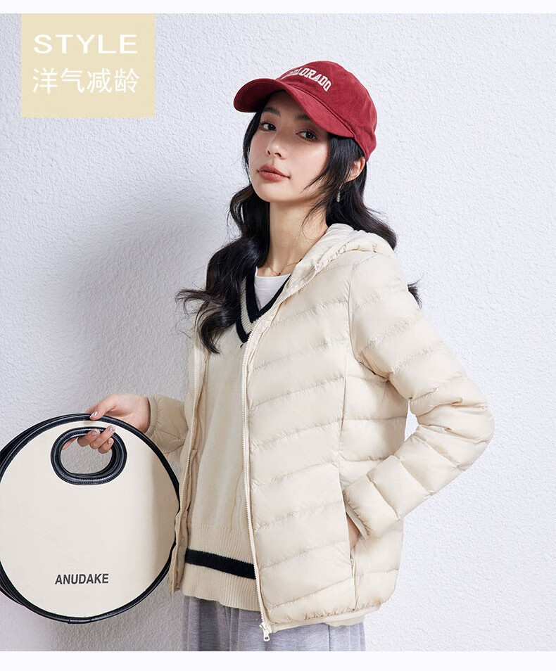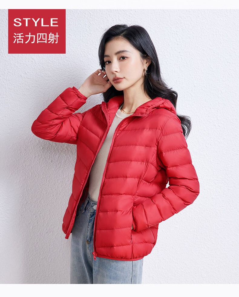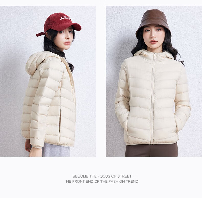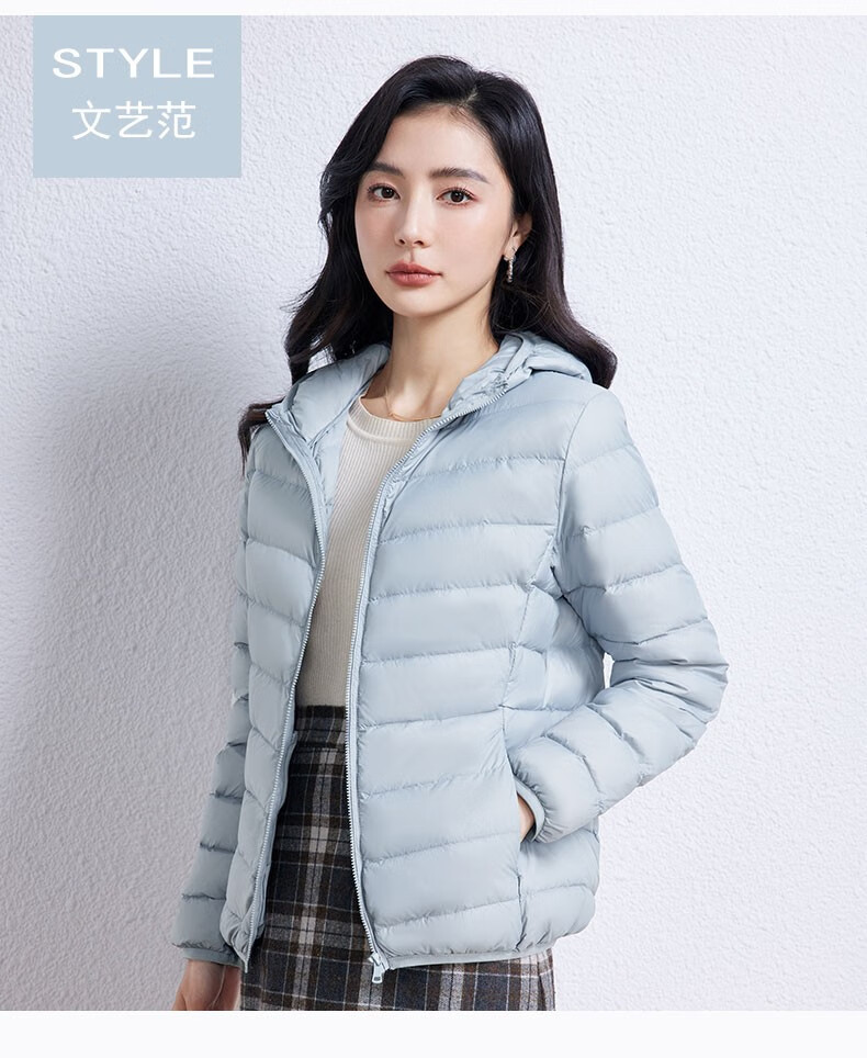 鸭鸭(YAYA)新国标轻薄款羽绒服女保暖时尚修身短款白鸭绒秋冬季连帽轻便外套